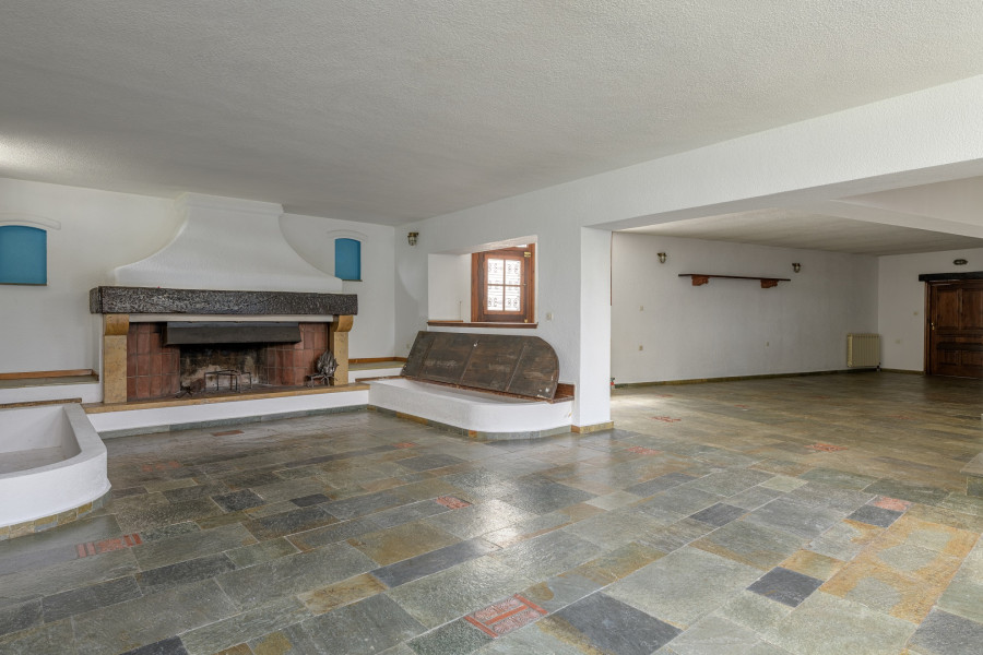 The lower level features independent access and includes a living room with a fireplace, a spacious dining area, a fully equipped kitchen, one bathroom, a cellar, and a boiler room.