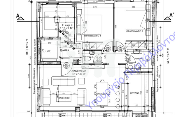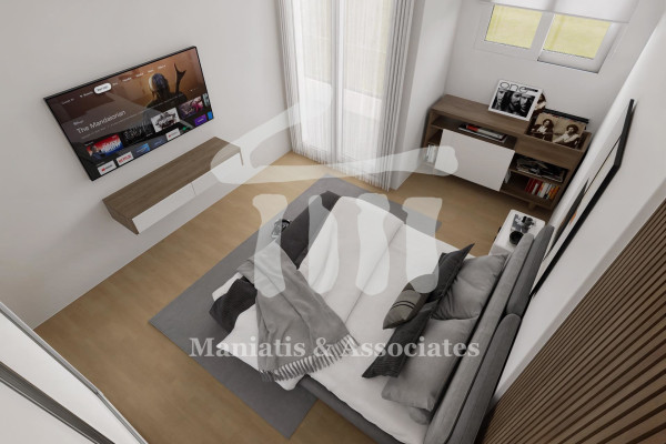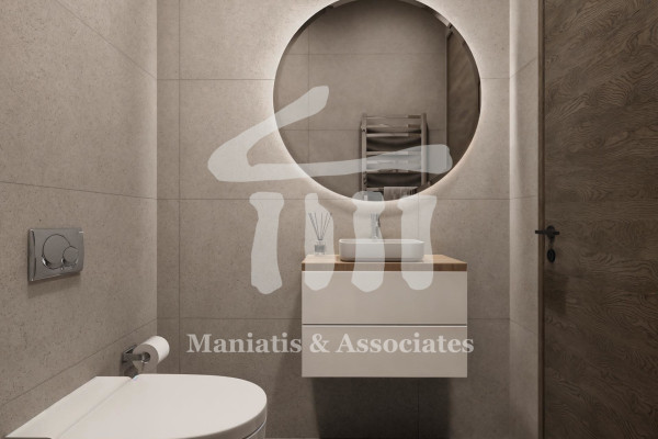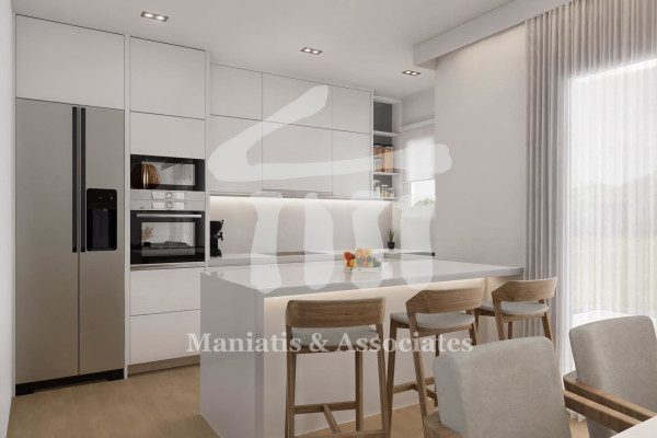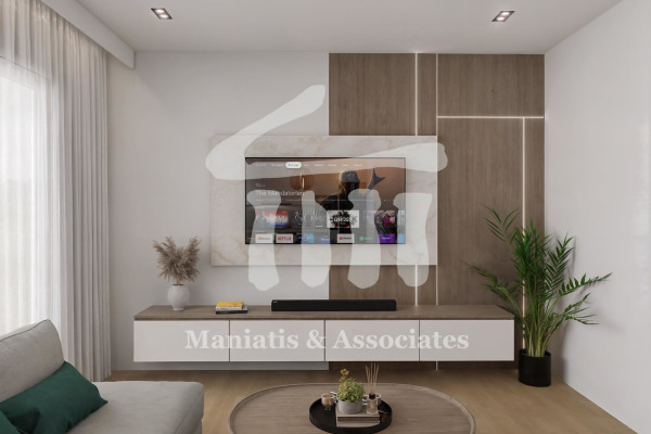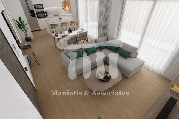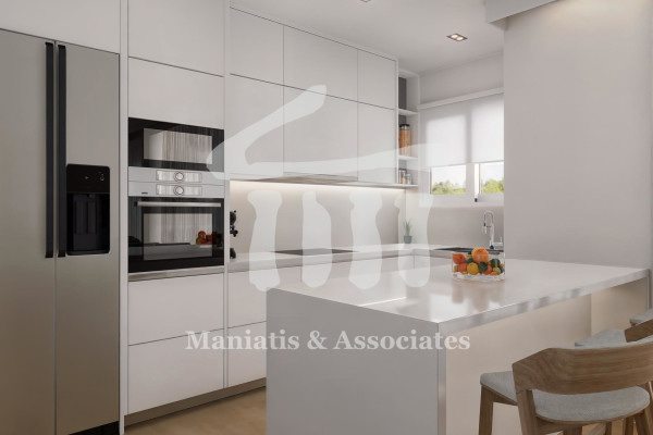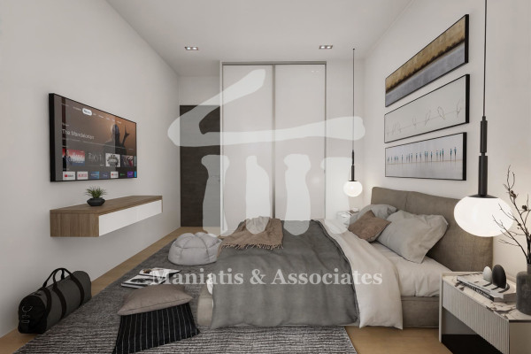 For Sale, Nea Smyrni - Agia Paraskevi: Apartment 77sq.m., 4th floor, under construction. It consists of a spacious living-dining room, a kitchen, 2 spacious bedrooms and 2 bathrooms. It has an elevator, security door, energy efficient aluminum frames and screens, thermal facade, autonomous gas heating, three-phase electricity, pre-installations for alarm, air conditioners and solar panel, parking space and basement storage as well as all the specifications of an energy class property: A+. It is very bright, in a minimal and modern building with an ergonomic layout that meets the needs of every family or professional. It is located in a privileged neighborhood of Nea Smyrni that offers quick access to the center of Athens and the coastal road. PRICE: €420,000