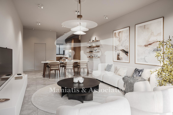 For Sale, Piraeus - Kastella: Apartment 78 sq.m., 1st floor, under construction. It consists of a living room with an open plan kitchen and dining room, 2 master bedrooms with their own bathroom and additional WC. It has an elevator, security door, intercom, individual heating, pre-installations for air conditioning and solar, balconies on both sides and all the specifications of an energy class A+ property. It is front-facing, airy and bright, in a quiet neighborhood, with easy and quick access to the market and transportation. It is a property of minimal aesthetics and modern construction, fully adapted to the modern needs of the time. PRICE: €280,000