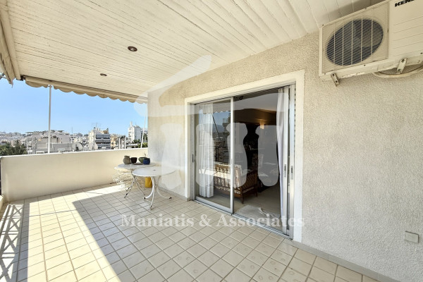 For Sale, Paleo Faliro - Amfithea: Apartment of 110 sq.m., 6th floor, built in 1989. It consists of a comfortable living room and dining area, an independent kitchen, 3 spacious bedrooms with fitted wardrobes, a bathroom with shower, a WC and a laundry room. It has an elevator with a large cabin, video intercom, aluminum frames with single glazing, autonomous natural gas heating and fireplace, dual-energy solar panel, three-phase and night power electricity, 5 air conditioners and 2 lofts. All areas have direct access to large verandas with an open horizon, which have manual awnings. The floors in the bedrooms are oak and in the common areas marble. The apartment is accompanied by a parking space in a covered courtyard and a storage room of 5 sq.m. This is a front-facing and bright property, in excellent condition that offers easy and quick access to the beach, schools, market, shops and transportation. Maniatis & Associates, Contact Phone: 2104190703, email:
