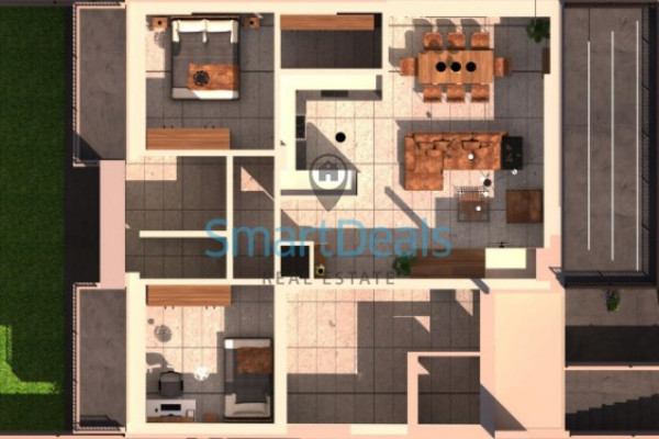 Apartment For sale, floor: Ground floor, in Agia Paraskevi - Paradeisos. The Apartment is 87 sq.m.. It consists of: 2 bedrooms, 1 bathrooms, 1 wc, 1 kitchens, 1 living rooms and it also has 1 parkings (1 Open). The property was built in 2025. Its heating is Autonomous with Heat pump, Underfloor heating, Solar water system are also available, it has Aluminum frames with Triple glazed - Energy Efficient windows, the energy certificate is: A. The property's status is: New development, it is close to Metro, Tram, Transportation, Mall, Cafe/Restaurants, Local market, it has Nature, Good view, Storage, Garden, Security door, Satellite Receiver, Trees. Price: €365,000. Smart Deals, contact phone: 2106080500, 6938882020, email: