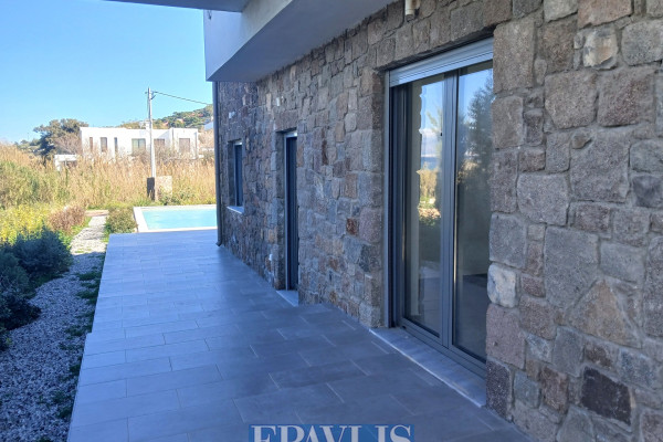 Apartment For sale, floor: Ground floor, in Aegina - Vagia. The Apartment is 90 sq.m. and it is located on a plot of 1.845 sq.m.. It consists of: 2 bedrooms, 2 bathrooms, 1 kitchens, 1 living rooms and it also has 2 parkings (2 Open). The property was built in 2025. Its heating is Autonomous with Electricity, Air conditioning, Boiler are also available, it has Aluminum, Thermal brake frames with Double glazed windows, the energy certificate is: A and its floors are Tiles. The property's status is: New development, Excellent condition, it is close to Sea, Seaside, City Center, Cafe/Restaurants, 50 Meters from sea, it has Sea, Panoramic, Unobstructed view and it has EastWest orientation. The Apartment is With Facade, Bright, Airy, Sunny, Airy, Detached, Seaside, Lower level house, Luxury, Stone house, Modern, it is suitable for Holiday home, Short term Rentals, Investment, Revenue source and it also has the following unique features and advantages: Window Screens, Storage, Swimming pool, Garden, Security door, CCTV, Security alarm, Pets allowed, Quiet neighborhood, Porch, Electric shutters. Price: €360,000. EPAVLIS REAL ESTATE AGENTS, contact phone: 2109945719, email: