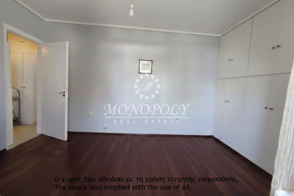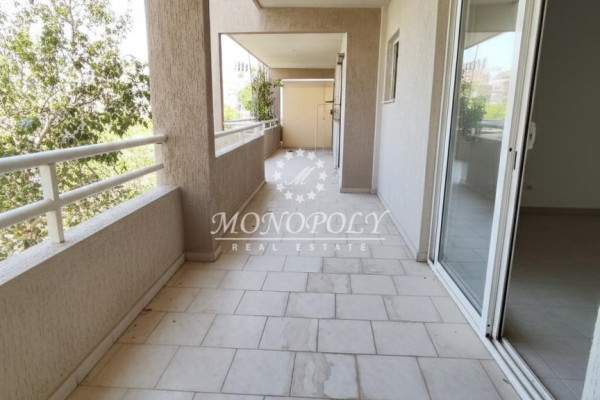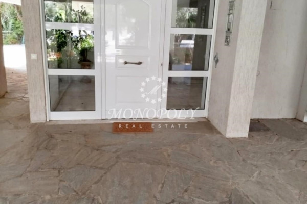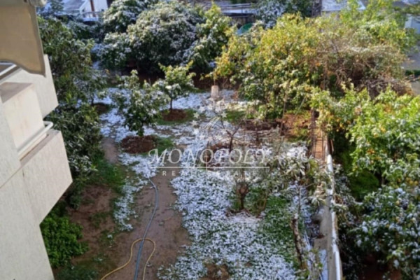 Glyfada Kato, near Grigoriou Lambraki, apartment 118 sq.m., 2nd floor, built in 1989, facing the road, bright, in good condition. It consists of a living room with a fireplace, a separate kitchen, 2 bedrooms (1 master), a total of 2 bathrooms, wide terraces. It has independent heating with oil, solar water system, fireplace, double glazed windows, security door, video door entry, storage room, double parking space and exclusive use of a 40 sq.m. garden. It is located in a quiet neighbourhood near the market and transport, 830 meters from the center of Glyfada. Ideally for office, medical office etc.