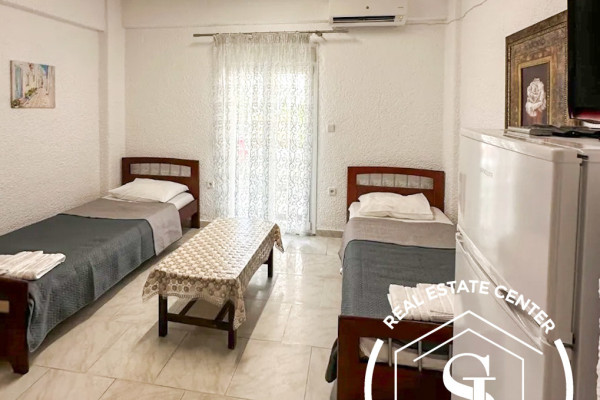 A beautiful 35 sq.m. apartment is available for sale, on the 1st floor, in a quiet area of Pefkohori, just 50 meters from the sea.