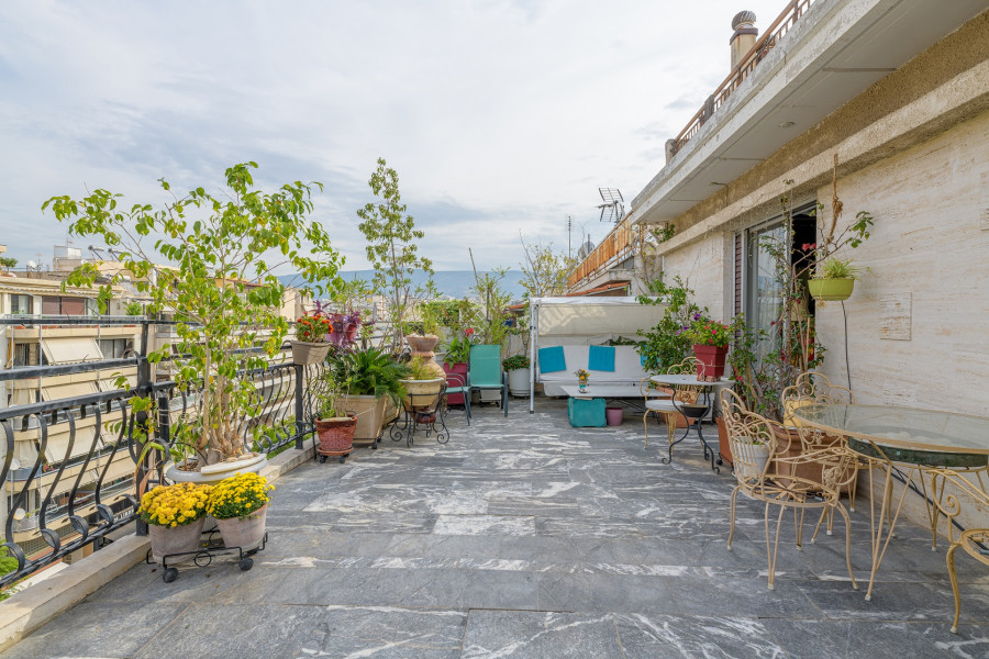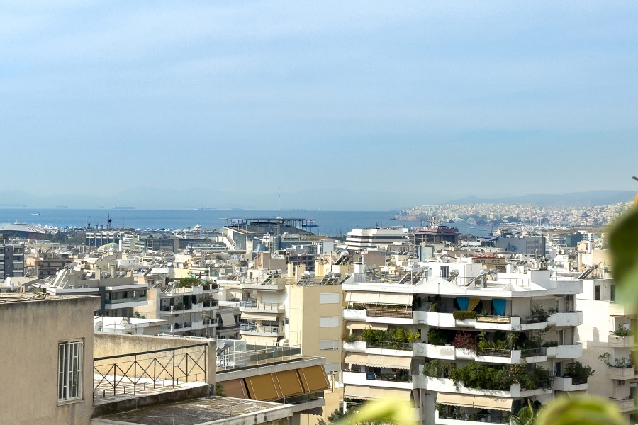 The 162sq.m. property occupies the entire 5th and top floor of a 1981 building and features large terraces with open views extending to the sea.