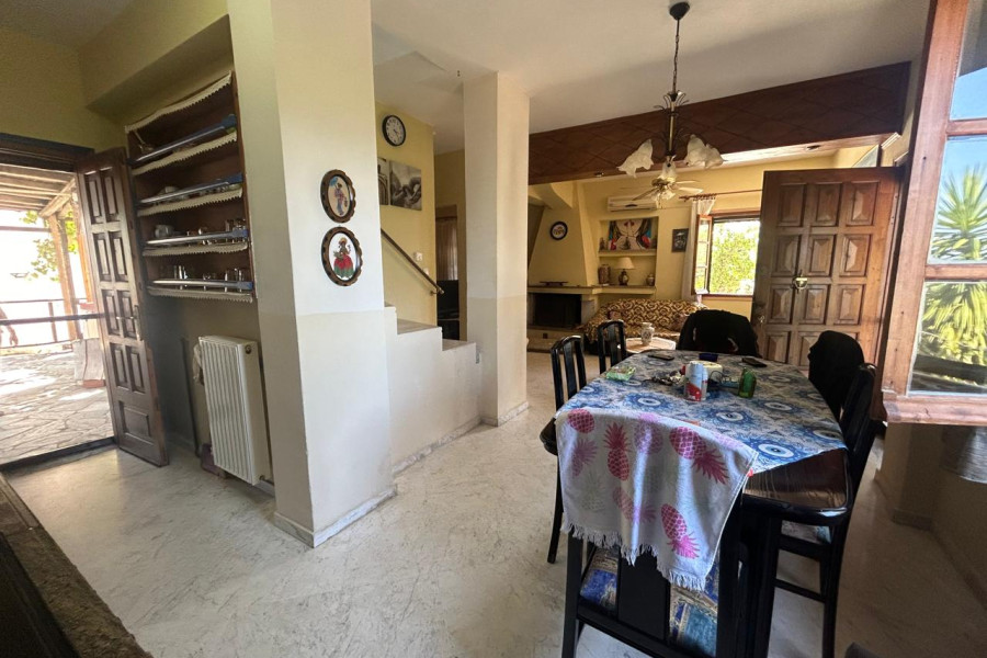 Villa of 177 sqm on a plot of 351 sqm, very close to the sea in Agios Ioannis, Pelion. The villa consists of 3 levels. Entering the ground floor, we find a spacious living room with a fireplace, a kitchen, and a bathroom. With an internal staircase, we have access to the first floor, where there are 3 bedrooms, each with its own separate bathroom. There is also a semi-basement, which functions like a separate apartment and consists of an open-plan area with a kitchen, a bathroom, and a storage room. The property has a nice sea view from part of the courtyard and from the first floor. It is in excellent condition, and its courtyard is landscaped with Pelion slabs.