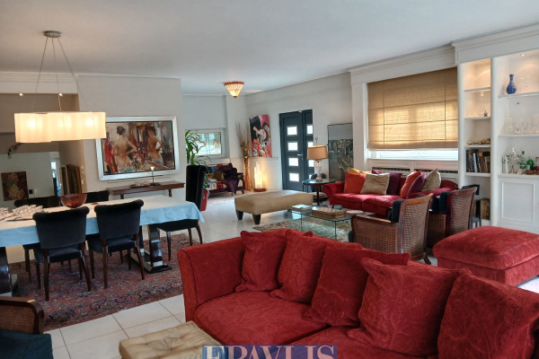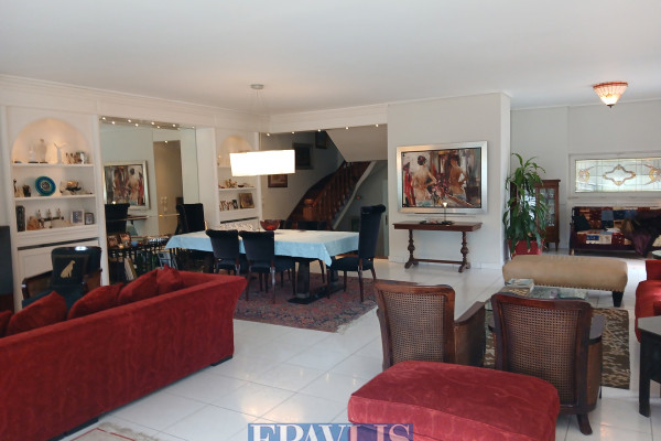 Luxury villa 550 sq.m. for rent, renovated, large reception areas, living room with fireplace, dining room, kitchen with sitting room, wc, terraces, access to garden and swimming pool, first floor with three bedrooms, one master, two bathrooms, living room with office, attic with bathroom, semi-basement with living room, fireplace, bathroom, maid's room with its bathroom, laundry, storage, access to closed parking. In addition, the house was built in 1990 and renovated in 2006, autonomous heating with oil, per level, has air conditioning, solar, has aluminum frames with double glazing, energy certificate: C and the floors are oak and tile, has a garden and a shared swimming pool with outdoor bbq, is located near a park, between luxury homes, has a green view, openness, panoramic, unobstructed and it has a southeast orientation. The property is located on a plot of 1500 sq.m. with adjoining residence, it is frontage, bright, airy, sunny, airy, luxurious, mansion, neoclassical, has the following features and advantages: awnings, electrical appliances, storage room, loft, imposing internal staircase, swimming pool, garden, security door, intercom, alarm, internal elevator, Internet, Playroom, automatic watering, lawn, trees, quiet neighborhood. Price: €5,000. EPAVLIS REAL ESTATE AGENTS, Contact Phone: 2109945719, email: