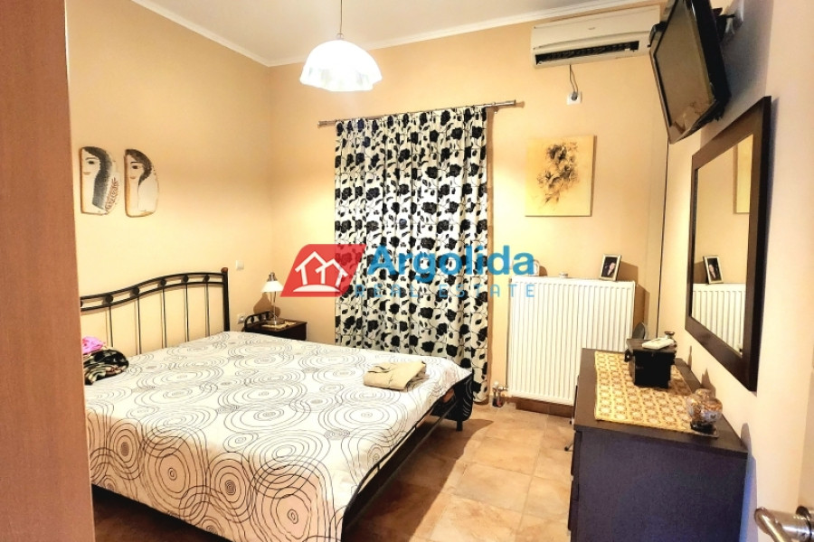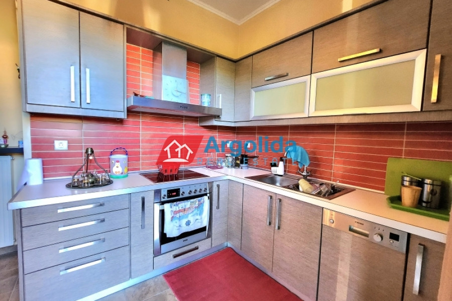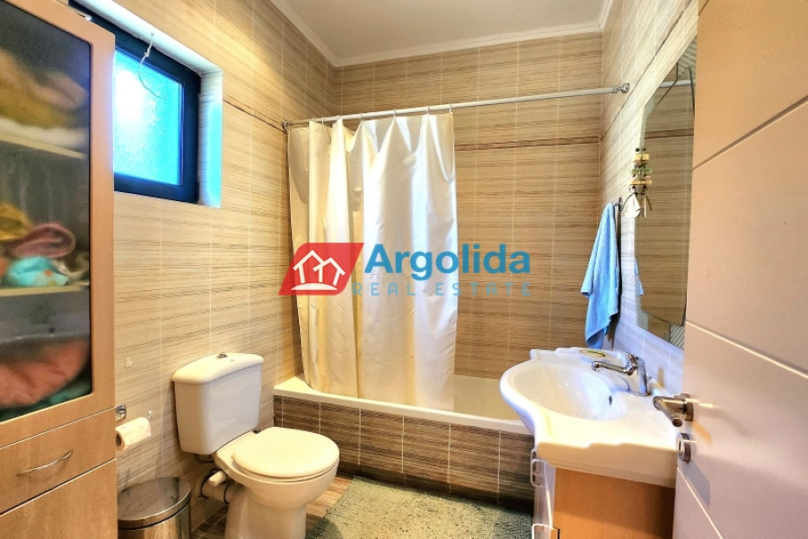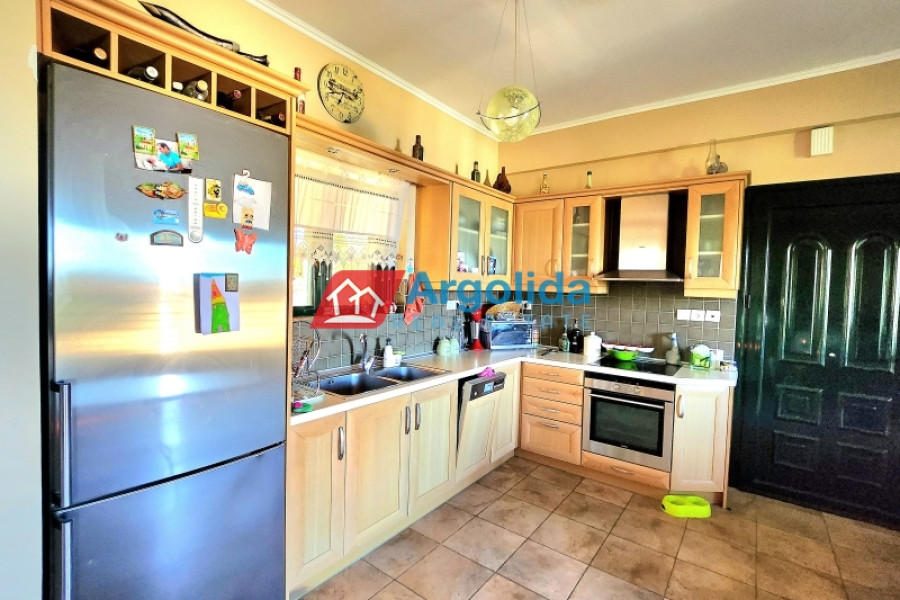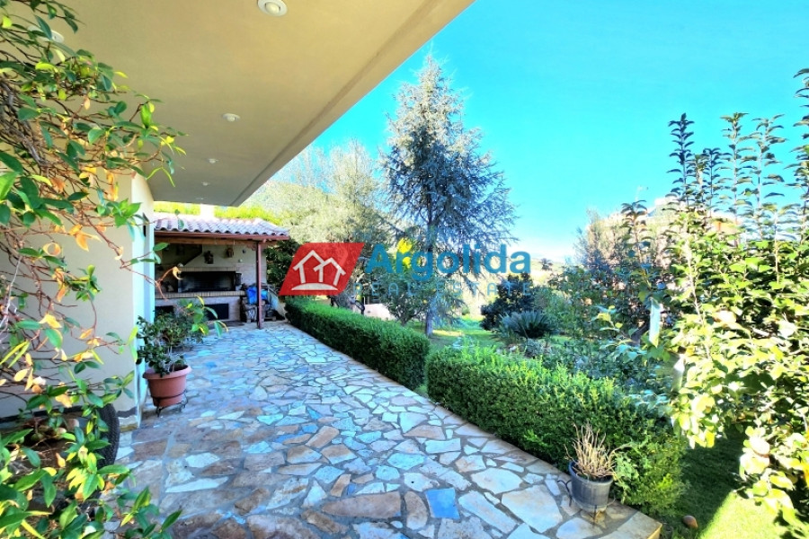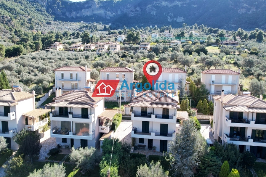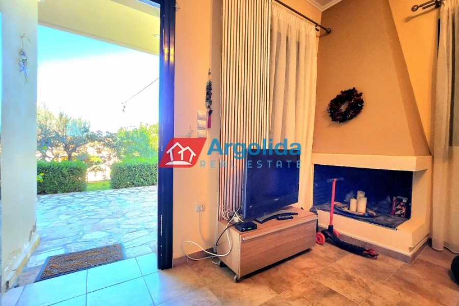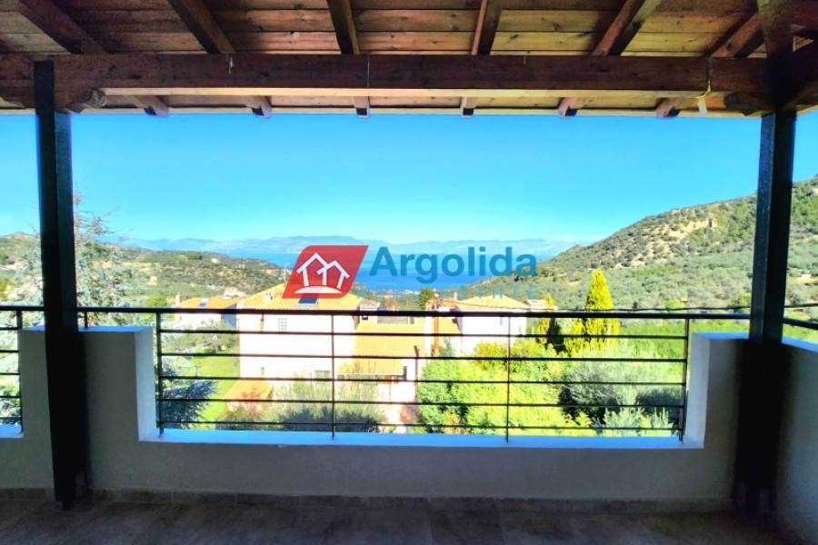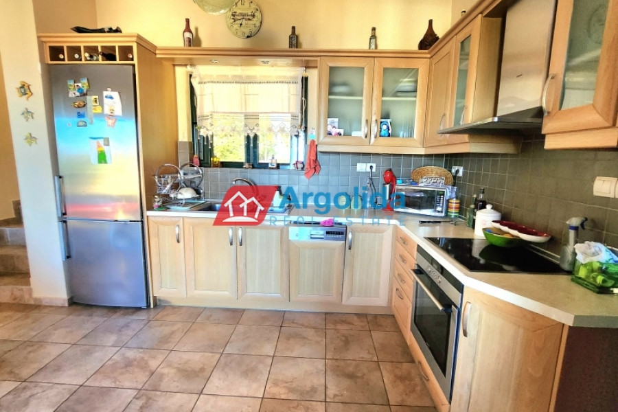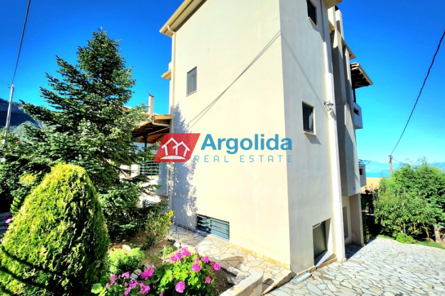 On a hill in Derveni, Corinthia, within the picturesque settlement of Rozenas, a three-level detached maisonette of 160 sq.m. is for sale, offering panoramic sea views and a beautifully landscaped garden. The property includes an independent ground floor apartment of 60 sq.m. (semi-basement due to the land slope), featuring an open-plan kitchen-living-dining area with a fireplace, one bedroom, and a bathroom, perfect for independent living or guests. The main residence spans two levels, with a bright open-plan living-dining-kitchen area with fireplace, laundry room, and a bathroom, while an internal staircase leads to the upper floor with three bedrooms, built-in wardrobes, and a balcony with unobstructed sea views. Outside, there is a covered BBQ area with a wood-fired oven, storage room, a separate space for the boiler, and private parking for two cars. The garden is mature and abundant, featuring lawn, apple and mandarin trees, olive trees, and ornamental plants, providing a serene and natural environment. The property is just 5 minutes from the organized Derveni beach, one hour from the Kalavryta ski resort, and about 1 hour and 40 minutes from Athens, with the new Suburban Railway (Proastiakos) station only 4 km away, offering direct connections to Athens and Eleftherios Venizelos Airport. This unique property combines peaceful surroundings, nature, and comfort, ideal for a permanent residence or a summer holiday home, offering a daily feeling of relaxation and vacation in a charming part of Corinthia.