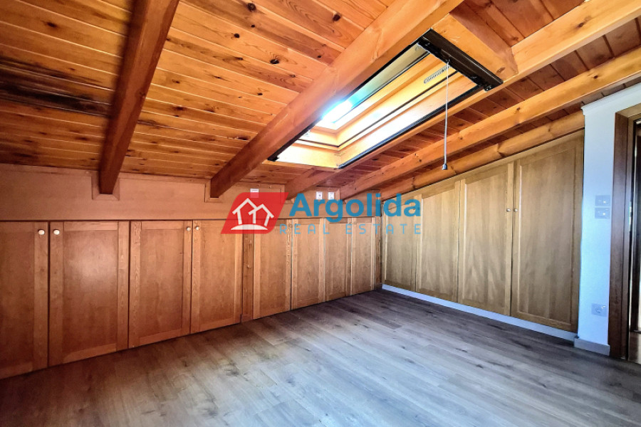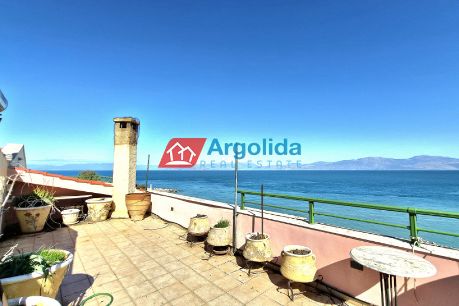 A unique seafront penthouse apartment is offered for sale in Xylokastro, in the region of Corinthia, within a tasteful and well-maintained residential complex featuring a shared swimming pool, landscaped gardens and a high level of privacy. The apartment is arranged over two levels with a total surface of 152 sq.m., including a legalized attic, as well as an additional regulated semi-outdoor space of 20 sq.m. It is located on the 5th and top floor of the building and enjoys an impressive roof garden with unobstructed sea views over the Corinthian Gulf. The property stands out for its high construction quality and refined aesthetics, including solid oak floors and premium wooden doors, aluminum window frames with double glazing and sound insulation, a built-in fireplace, a kitchen countertop made of Dionysos marble, and carefully selected tiles, sanitary ware and wardrobes that combine elegance with functionality. The first level (5th floor) features a bright living room with fireplace and direct access to a large covered veranda with panoramic sea views, a separate fully equipped wooden kitchen with built-in appliances, two comfortable bedrooms with large built-in wardrobes and access to a shared veranda, as well as a bathroom with shower. The second level includes two additional bedrooms, a bathroom with shower, a separate jacuzzi and sauna area, and direct access to the spacious roof garden that offers complete privacy and a unique relaxation experience with open sea views. The apartment is equipped with autonomous oil heating, electric shutters, solar water heater, satellite antenna and a reinforced security door. Wooden flooring throughout the residence creates a warm and welcoming atmosphere, while the large verandas and privileged position ensure uninterrupted sea views and beautiful sunsets. One of the property’s greatest advantages is its immediate access to the organized beach and all central points of Xylokastro. Within a short walking distance there are shops, restaurants, the marina, water sports and numerous leisure activities, making the property ideal both as a holiday home and as a high-yield investment opportunity. In addition, it is only five minutes from the suburban railway station with direct connection to Athens International Airport, offering excellent accessibility.
