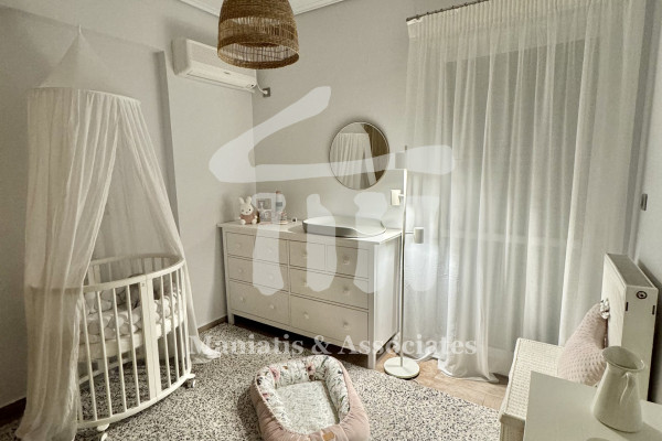 For Sale, Nice - Neapoli, border with Korydallos: 4th floor apartment, total area 90 sq.m., built in 2000, completely renovated in 2017. It consists of a comfortable living room, kitchen, 2 spacious bedrooms with new sliding wardrobes and 1 bathroom with a large shower and window. It has an elevator, security door, video door entry, aluminum frames with double glazing and screens, independent oil heating with central boiler, energy fireplace, solar water heater and basement storage of 6 sq.m. It is a modern apartment, with a smart layout where all rooms offer direct access to a balcony. In the front view there is a large veranda with electric awnings and two smaller balconies in the open. The property is front-facing, airy and very bright, while it is located in a quiet neighborhood, 10' walk from the Korydallos metro and the blue line, next to a market, schools, tutoring centers and supermarkets. Upon consultation, it is possible to fully furnish and equip with electrical appliances so that it is immediately habitable, without any additional work. PRICE: €220,000