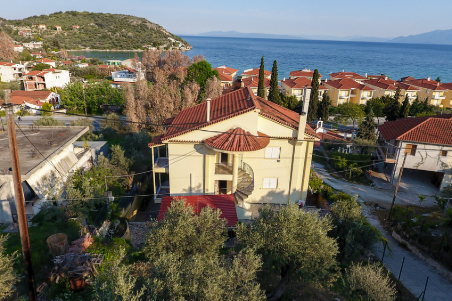 Building of 270 sqm on a plot of 1,427 sqm in Chrisi Akti Panagias, Volos. The building consists of three independent floor apartments. Each apartment is 90 sqm and includes a kitchen, living room with a fireplace, two bedrooms, and two bathrooms. The apartments on the 1st and 2nd floors offer amazing views from all rooms. The ground floor apartment has a storage room at the back. The property is located just 180 meters from the sea and features a large courtyard with a BBQ, air conditioning, an autonomous oil heating system in each apartment, and parking spaces. The apartments are also available for sale individually.