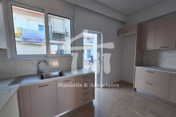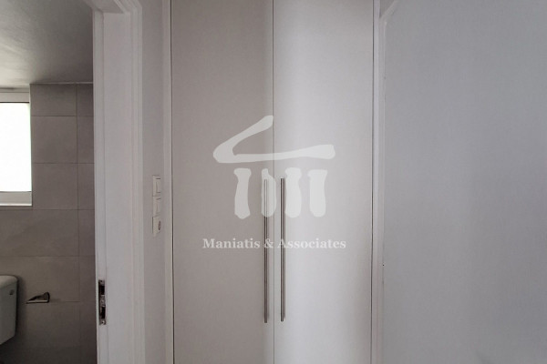 For Rent, Kastella - Pasalimani: Floor apartment 46 sq.m. 5th floor penthouse, airy, built in 1983 and fully renovated in 2023, consists of: living room, large independent bright kitchen with exit to balcony, 1 comfortable bedroom and bathroom with natural ventilation. It has aluminum frames with double glazing and screens. Heating and cooling is individual and independent with new a/c inverter. There is a power night watch and fiber optic. It has 1 wardrobe in the bedroom and 1 other double-leaf large capacity wardrobe in the hall outside the bathroom. The front porch is very large, at least 25 sq.m. and has awnings as well as the back balcony. The apartment is airy and bright with openness to its view, has few common areas and is in an excellent location and quiet neighborhood, next to all public transport, the shopping center, the market, restaurants and the University. The apartment building is quiet and family friendly with few apartments. Price: €590. Maniatis & Associates, Contact Phone: 2104190703,