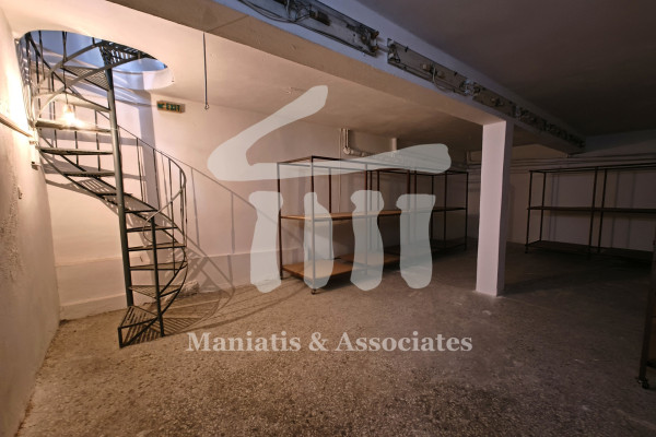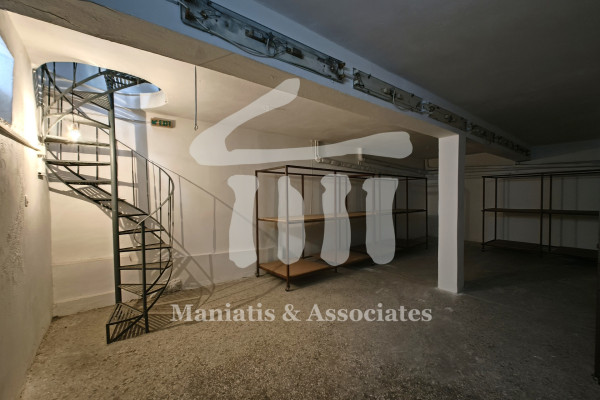 For rent: Ground-floor commercial store located in the Chatzikyriakio area of Piraeus. The property is spread over three levels with a total surface area of 160 sq.m., consisting of a ground floor and basement of 64 sq.m. each, as well as a 32 sq.m. mezzanine. The levels are connected by an internal metal staircase. The store includes one bathroom on the ground floor and also features an internal loading ramp that provides access to the basement. The doors and window frames are made of iron, while the flooring is mosaic. The storefront has a width of approximately 6 meters, and the internal height of the property is 5 meters. Additional features include a three-phase power supply. Year of construction: 1980. Rental price: €500. For more information, contact Maniatis & Associates at 2104190703 or via email at