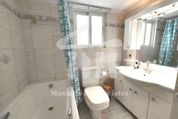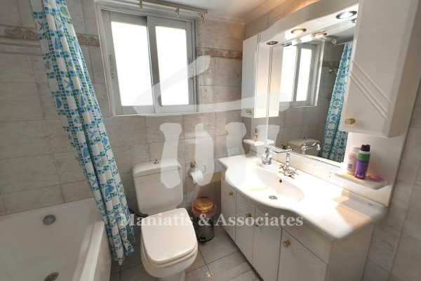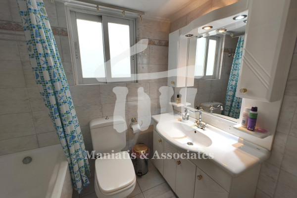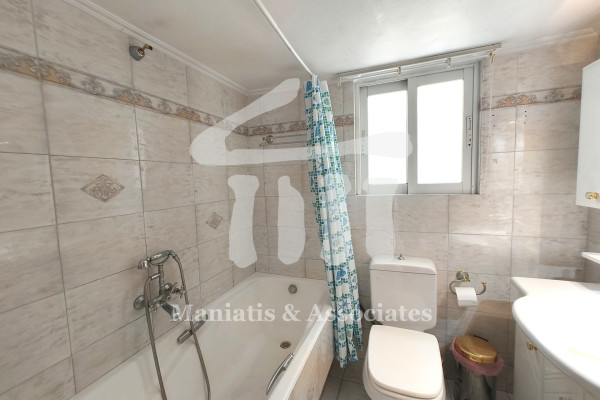 Apartment for sale on the 2nd floor, located in the area of Keratsini - Amfiali, with a total area of 92 sq.m. It consists of 3 bedrooms, 2 bathrooms, 1 kitchen, and 1 living room, and includes 1 parking space in the pilotis. The property was built in 1991 and renovated in 2015. Heating is individual with natural gas and a boiler is available. The frames are aluminum with double glazing, and the floors are tiled. The apartment is in good condition, corner and street-facing, bright, with an urban view. It is a floor apartment suitable for professional use or cohabitation. It is located close to public transportation, park, school, square, farmers' market, supermarket, shopping center, market, and dining options. Additional features include awnings, no common fees, night electricity, pets allowed, a veranda, and a quiet neighborhood. Price: €175,000. Maniatis & Associates, Contact Phone: +30 2104190703, email: