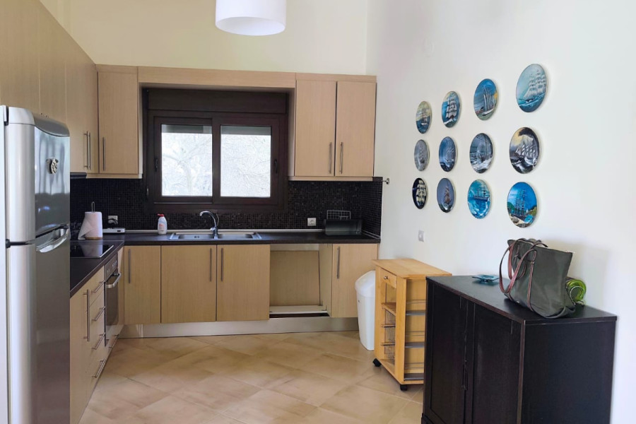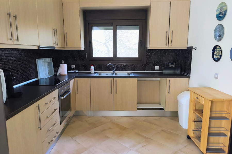 Property Code: HPS5985 - House FOR SALE in Kassandra Kalandra for € 370.000 . This 264.00 sq. m. furnished House consists of 2 levels and features 3 Bedrooms, Livingroom, Kitchen, 2 bathrooms . The property also boasts Heating system: Autonomous heating - Oil, tiled floor, unobstructed view, Window frames: Aluminium, Armourplated door, parking, a storage unit sqm, garden, fireplace, A/C, electrical appliances, insect screens, double-glazed windows, BBQ, roof Garden, playroom, open space, internal staircase. The building was constructed in 2009 Plot area: 8800 s.q. . Building Energy Rating: C Distance from sea 2800 meters, Distance from the city center: 100000 meters, Distance from nearest village: 1000 meters, Distance from nearest airport: 89600 meters, Contemporary House in an Olive Garden – Kalandra, Halkidiki. Sleek architecture, natural surroundings, and complete privacy—this two-level house in Kalandra on the Kassandra Peninsula, near Cape Possidi, offers a contemporary lifestyle at one with nature. Nearly a hectare of land, densely planted with olive trees, creates a living green screen around the house without unnecessary noise. Ground level – 120 m²: A contemporary-style open-plan living room and kitchen with a fireplace and large windows that literally bring the garden into the house. Three bedrooms with natural light and two bathrooms. Wraparound balconies overlook the olive garden, mountains, and the sea on the horizon. Lower level – 144 m²: Two spacious rooms for any need: a gym, a games room, a workshop, or additional guest rooms. A closed garage and boiler room are situated here as well. One of the main advantages of this place is its location on a small hill with stunning views. There is a spacious terrace for enjoying the view. This is the perfect place for those who love to spend time away from the crowds, immersed in nature. A private olive grove, sea sunsets, and the beaches of Possidi just a short drive away—a rare combination for this price.