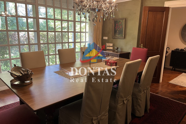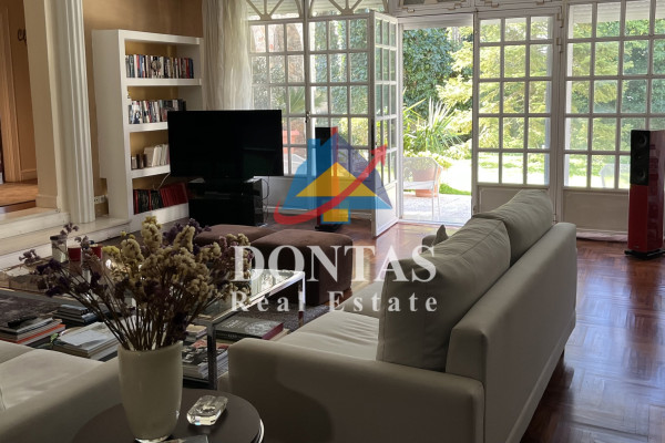 Apartment For sale, floor: Ground floor, in Kifisia - Center. The Apartment is 220 sq.m.. It consists of: 3 bedrooms (2 Master), 2 bathrooms, 2 wc, 1 kitchen, 2 living rooms. The property was built in 1999. Its heating is Autonomous with Natural gas, Underfloor heating, Air conditioning are also available, it has Aluminum frames with Double glazed windows, the energy certificate is: C and its floors are Wooden, it is close to Electric train, Transportation, School, Square, Super Market, Cafe/Restaurants, Local market, it has Nature view. The Apartment is Bright, Storage, Garden, Security door, Security alarm, Grass, Trees, Pets allowed, Quiet neighborhood, Porch. Price: €780,000. Dontas Real Estate, contact phone: 2106231555, Mob: 6980502020, email: