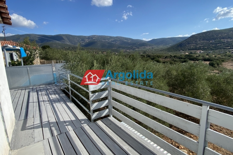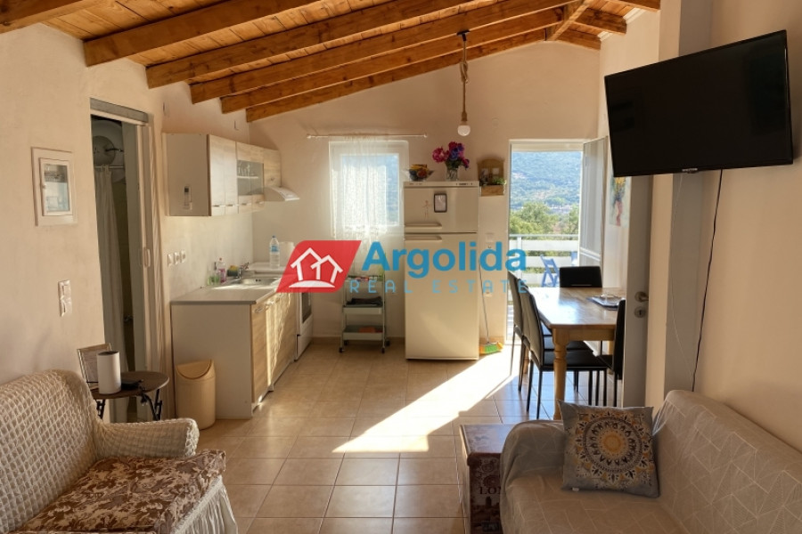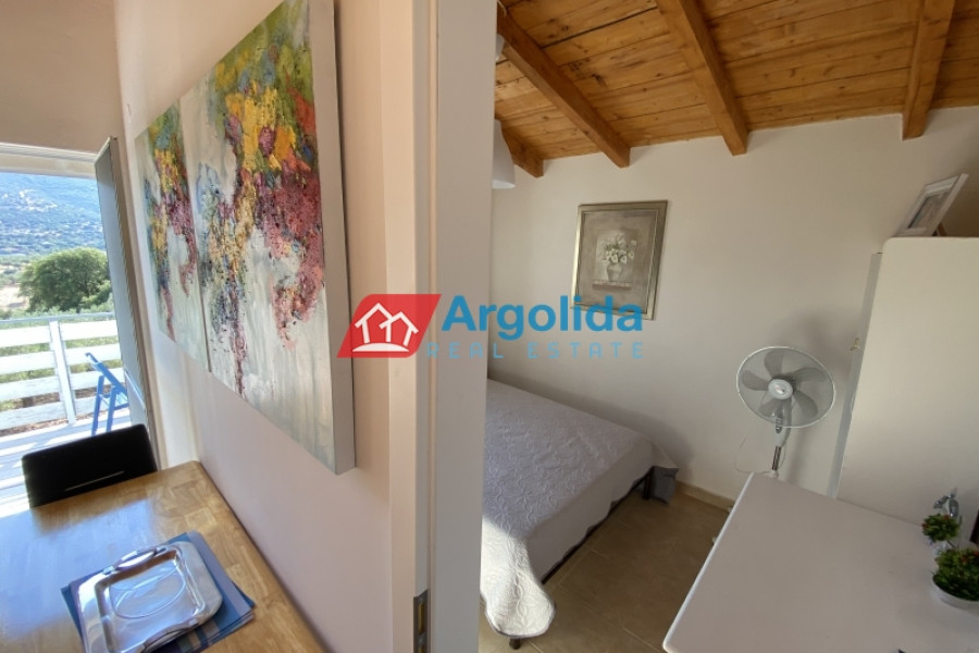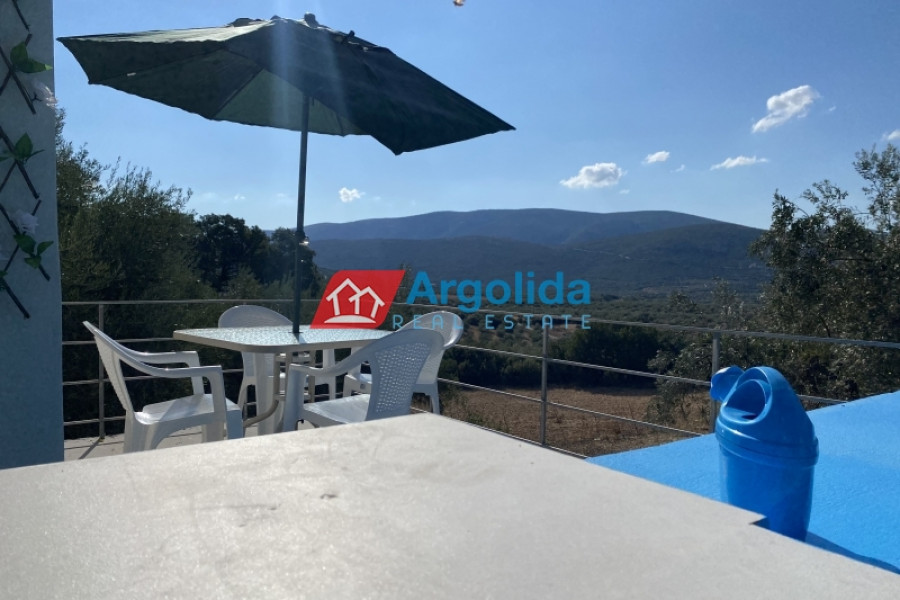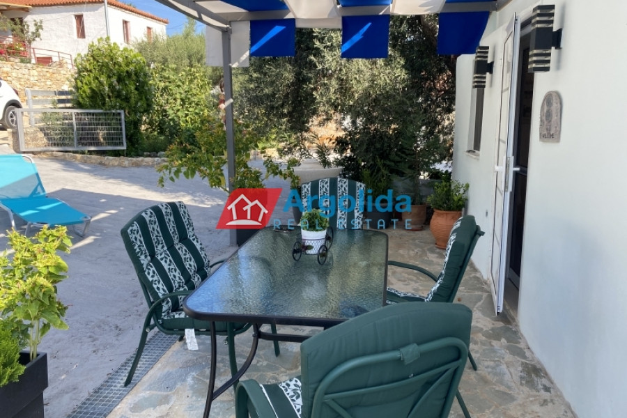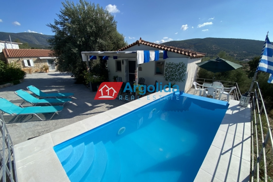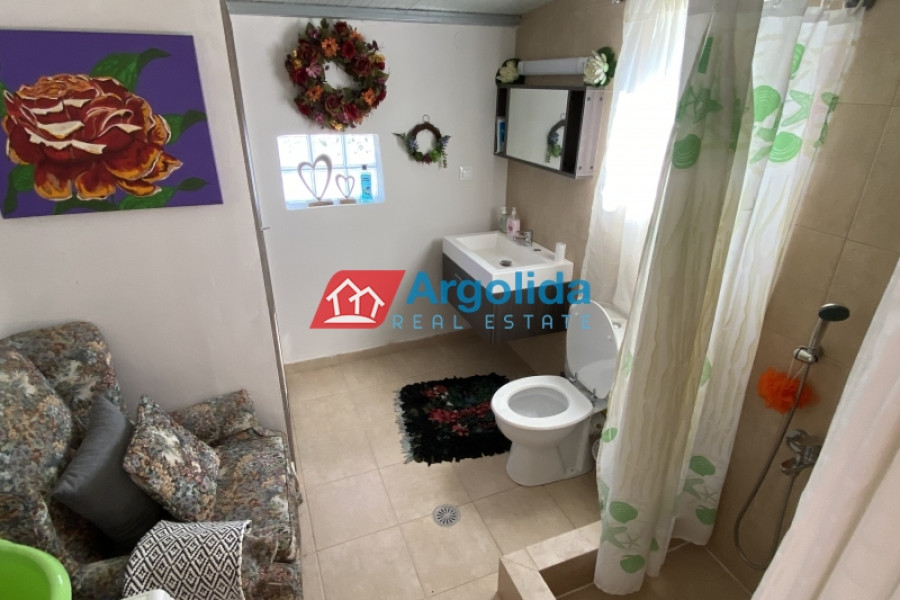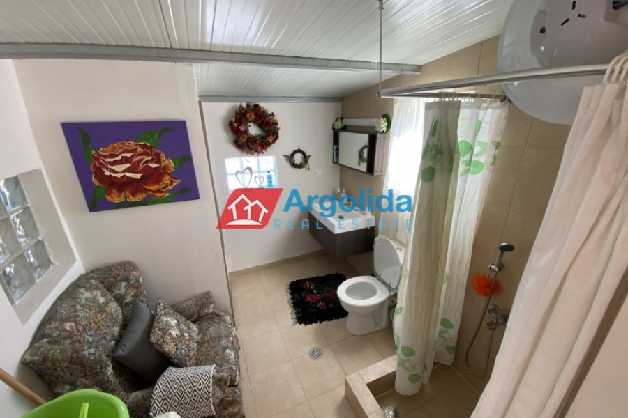 In Agrilitsa, a small rural settlement located 20 minutes from the town of Argos, a fully furnished ground-floor house of 60 sq.m. is available for rent within a 100 sq.m. plot featuring a private pool. The residence offers an open-plan living and dining area with a kitchen, two bedrooms, and one bathroom. The living room provides direct access to a veranda with beautiful views, while the outdoor space includes a lovely landscaped garden with a pool. This charming home is an ideal choice for anyone seeking a quiet, secluded, and relaxing lifestyle close to nature.