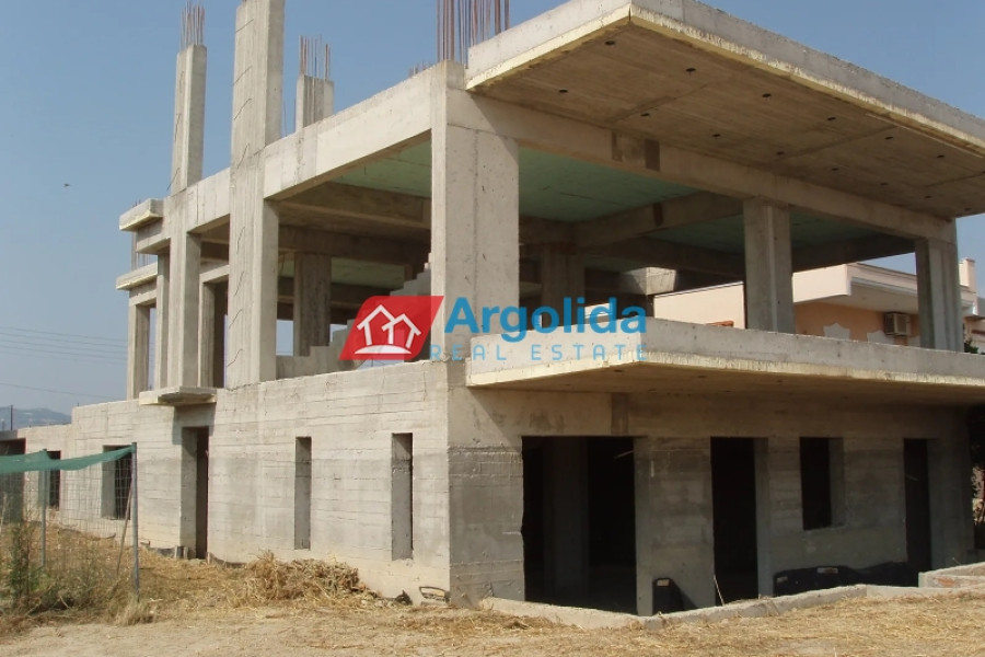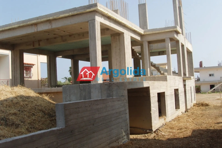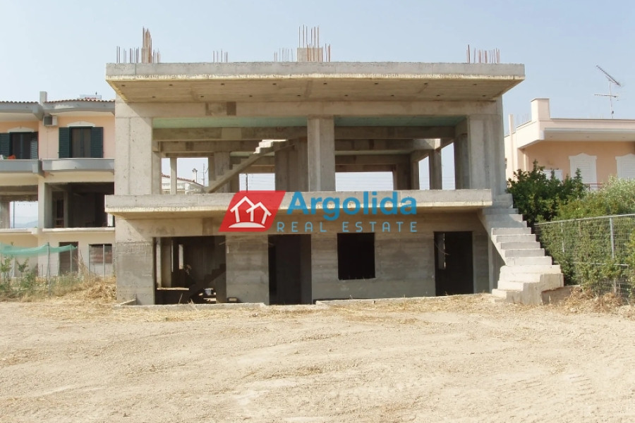 In a quiet and growing residential area in Kato Assos, Corinth, this incomplete detached house of high potential is offered for sale, with a total surface of 273 sq.m. on a 663 sq.m. plot featuring 14.5 m frontage on an asphalt municipal road. The property consists of a 123 sq.m. elevated ground floor, a 150 sq.m. elevated semi-basement, and includes an additional building allowance of 140 sq.m., offering excellent possibilities for completion or further expansion. The current layout features 5 bedrooms, 2 living rooms, 2 kitchens, 2 bathrooms, and 2 WC, making it ideal for a large family, for creating two independent residences, or for investment purposes such as rental accommodation. The house includes a spacious garden and easy access to essential amenities, while being conveniently located 750 m from the sea, 500 m from the town, 8 km from a nearby village, and 120 km from the airport. Built in 2010 and currently at concrete-frame stage, the property allows the future owner to complete it entirely according to personal taste and modern energy standards. A great opportunity in a peaceful neighborhood close to the coast, with large usable spaces and strong upgrade potential.