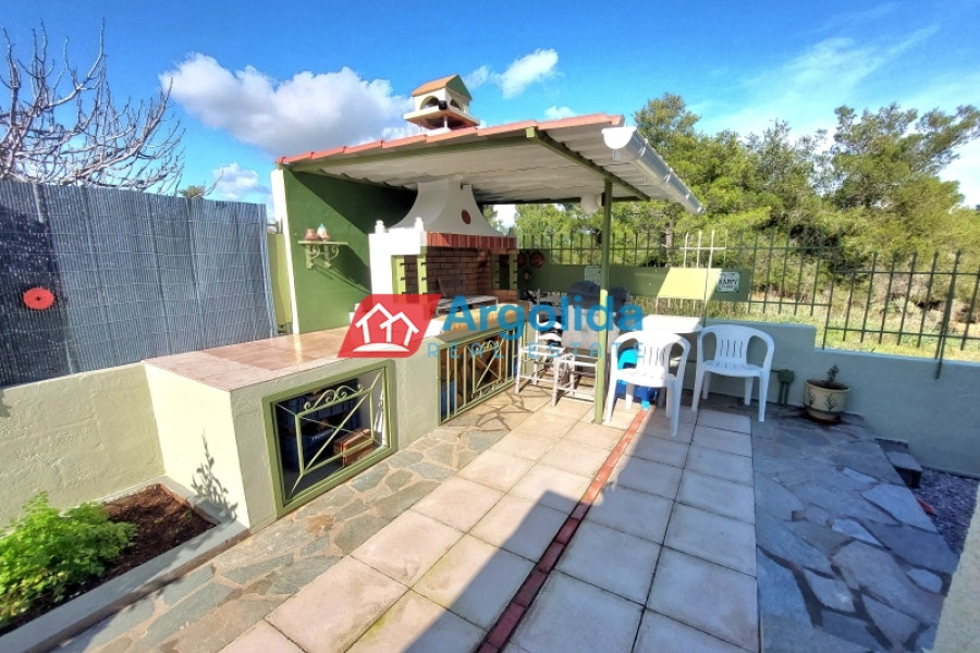 Very close to Porto Heli, in a quiet and green area mainly consisting of holiday homes, a recently renovated (2024) ground-floor detached house of 77 sq.m. is available for sale, ideal for both a holiday retreat and permanent living. The house is slightly elevated and features storage areas underneath as well as a large 13 cubic meter water tank, offering practicality and autonomy. The plot is fully fenced, with paved areas around the house, a spacious garden with ornamental trees and a dedicated barbecue area, creating an ideal outdoor living environment. The property is equipped with a solar water heater, a fireplace and air conditioning in all rooms, ensuring comfort throughout the year. It consists of two comfortable bedrooms and an additional smaller room that can be used as a guest room or a home office. The house is in excellent condition and is located only 1,500 meters from the beautiful beaches of the area, 2.5 km from the cosmopolitan Porto Heli, 16 km from the new professional-standard golf course currently under construction and approximately 200 km from Athens International Airport. In addition, it offers easy access to the beautiful islands of Spetses and Hydra, making it a great investment opportunity and a truly attractive property in one of the most desirable locations of the Argolida region.