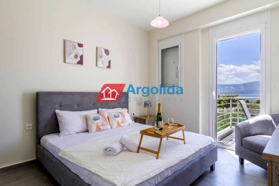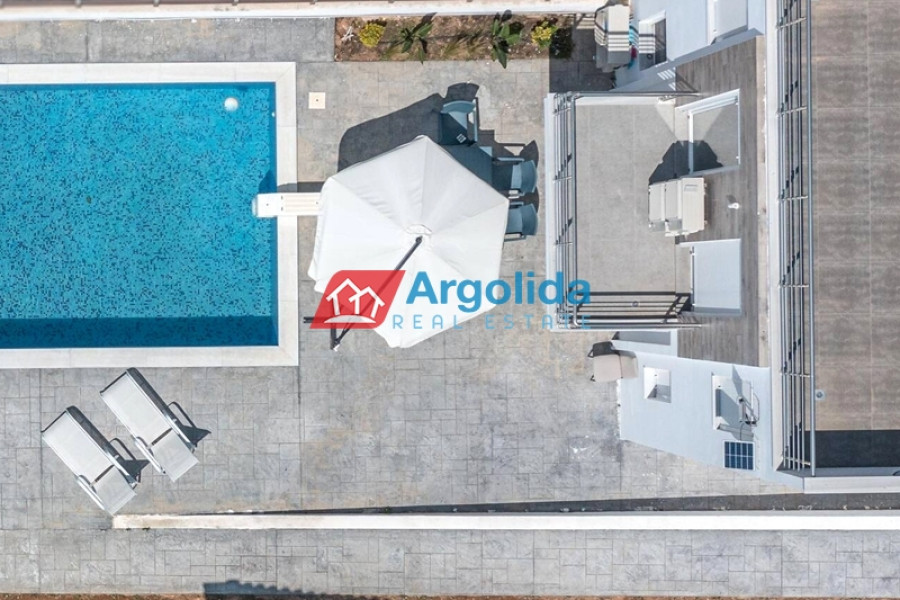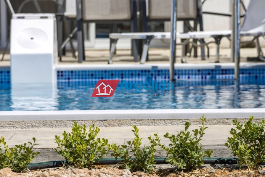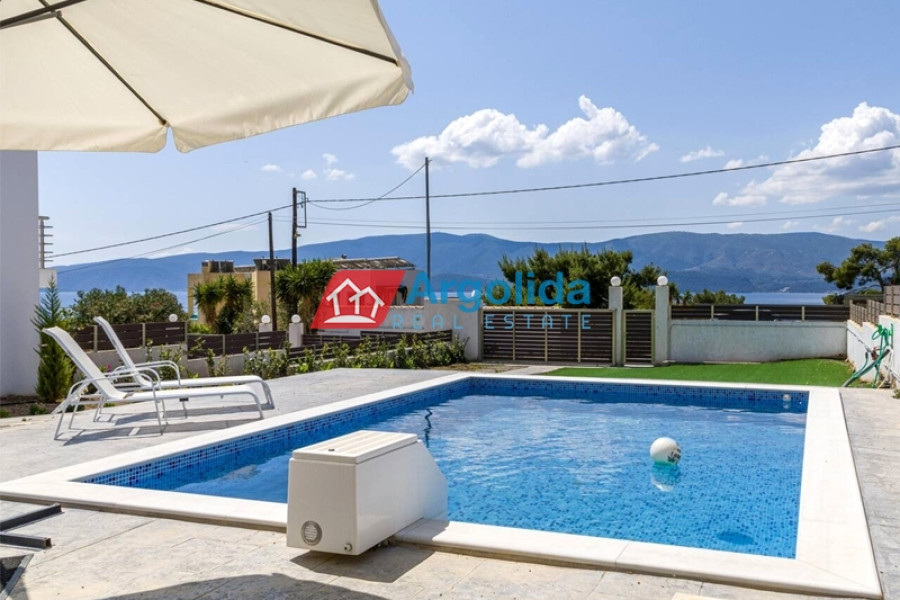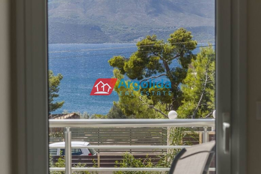 In Kavos, Corinthia, near Isthmia and just 250 meters from the beach, a detached house of excellent construction is for sale, 135 sq.m. in size, on a 1,270 sq.m. plot, featuring a private swimming pool and lush garden. Its unique location, very close to Loutraki, provides easy access to organized beaches, luxury resorts, and wellness facilities, making it ideal for a permanent or holiday home. The layout is highly functional, with the ground floor comprising an open-plan kitchen and living area with 1 WC and direct access to the garden and pool. The mezzanine level includes two bedrooms, one with an en-suite bathroom, plus an additional bathroom for residents’ convenience, while the top floor offers a bright, multi-purpose space with a large terrace and WC, perfect for an extra bedroom or office. The outdoor area is carefully designed with trees, lawn, and parking space for two cars. The combination of high-quality construction, a prime beachfront location, immediate access to the sea, and the amenities of Loutraki makes this property an excellent choice for personal use or investment purposes.