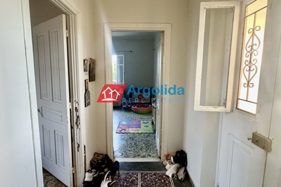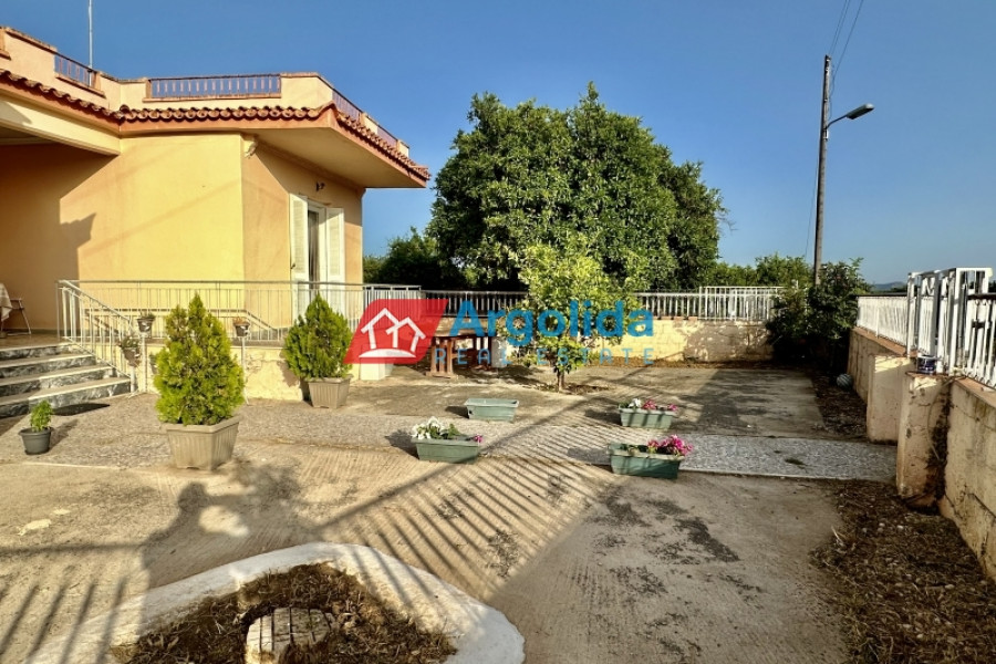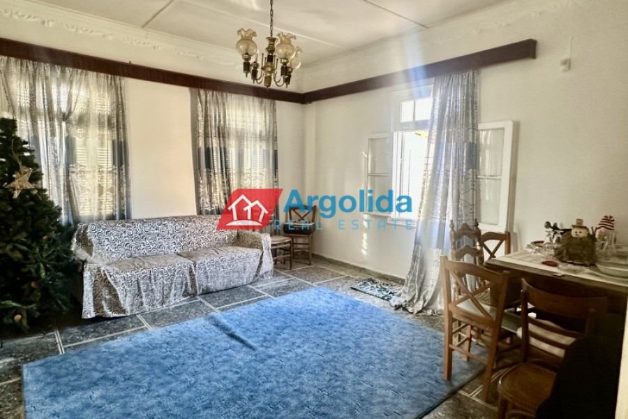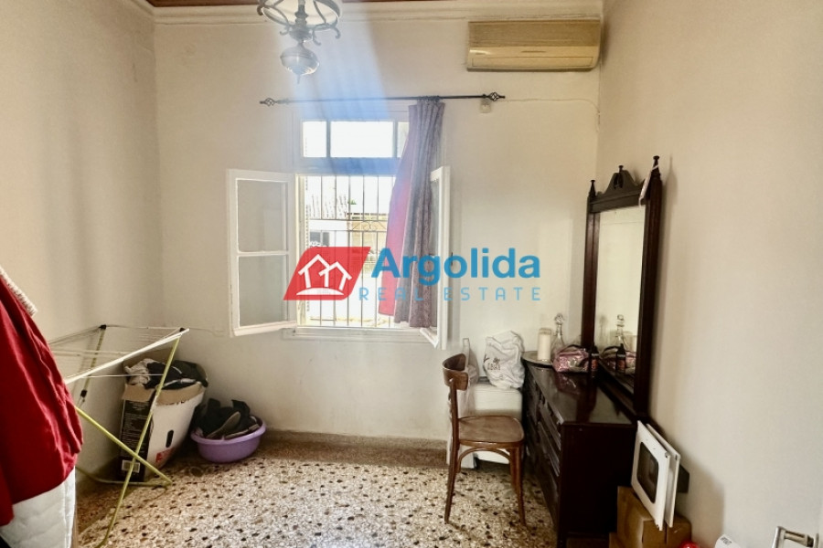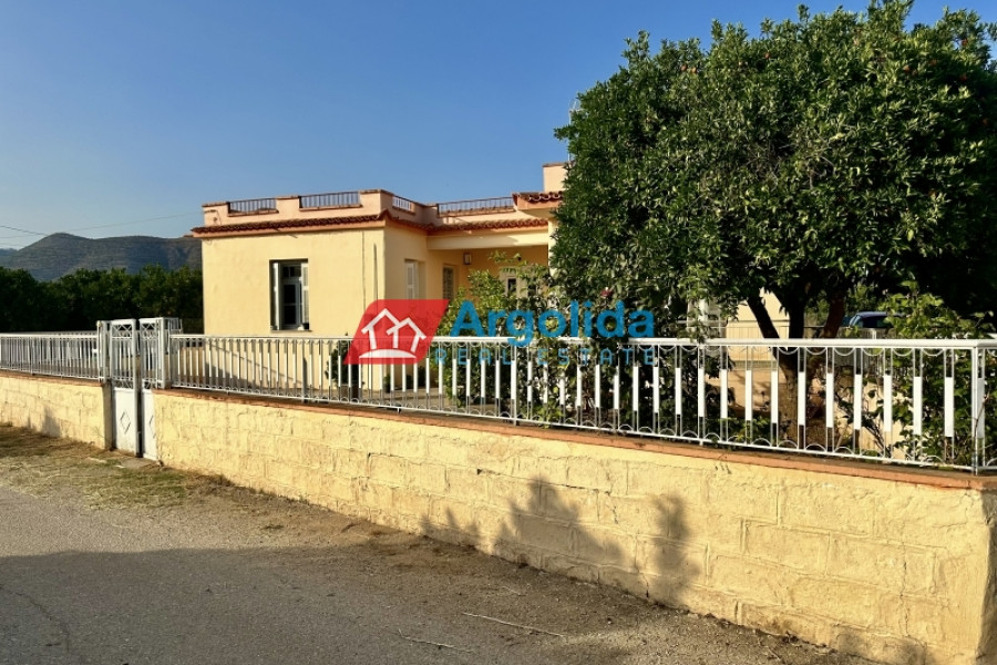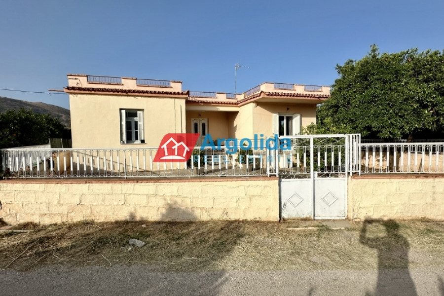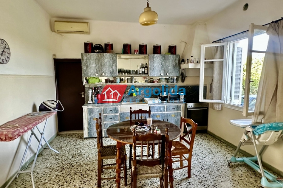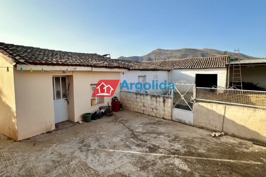In Mycenae area at Neo Iraio, a fully furnished 140 sq.m. house is offered for sale on an 850 sq.m. plot, ideal for those seeking quality of life, peace and quiet, and a close connection with nature in an authentic and tranquil setting. The property is situated on a mezzanine level and comprises three comfortable bedrooms, a bright living room, a functional kitchen, and a bathroom, featuring mosaic flooring, wooden window frames, and a beautiful mountain view that enhances the sense of calm and relaxation. It is complemented by a 120 sq.m. storage building, a garden, and open spaces, while also offering modern comforts such as A/C, an alarm system, and a solar water heater, making it suitable for both permanent and holiday living. Built in 1973 and classified with an energy rating of F, the property represents an excellent investment opportunity with strong potential for renovation and value enhancement, and its location provides an ideal balance between nature and accessibility, being just 50 meters from the nearest village, 5 km from the city center, and 10 km from the sea, making it a perfect choice for buyers looking for serene living in the heart of the Greek countryside.