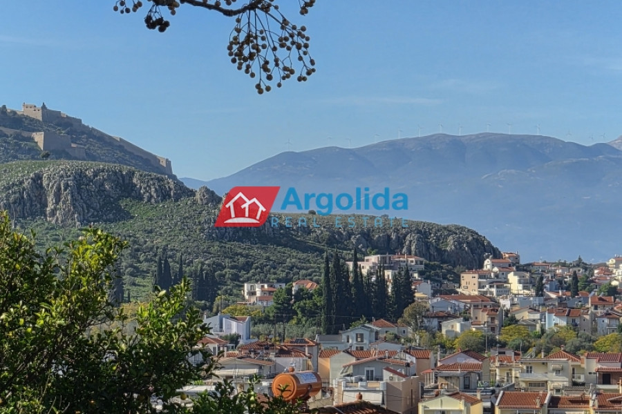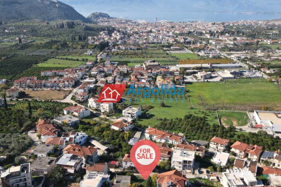 In the Aria area, just minutes from the enchanting Nafplio, a 385 sqm plot is for sale with remaining buildable area of 240 sqm and a 60% coverage ratio, ideal for a residential or commercial property. The maximum permitted height is 7.50 m plus additional height for a pitched roof, allowing the construction of a modern home. The plot is sloped, easily accessible from two roads, with 16 m frontage and 30 m depth, equipped with all essential utilities (electricity, water) and offering unobstructed views of Palamidi Castle and the surrounding mountains. Its location combines easy access to the city with tranquility and natural beauty, making it a perfect opportunity for a custom-designed home or business space.