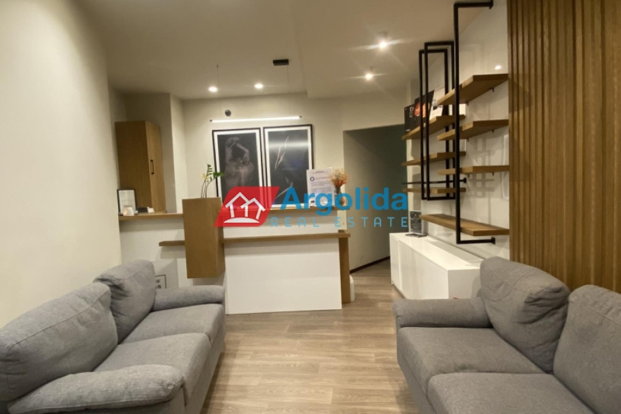 In the center of Nafplio, a fully renovated office space of 180 sq.m. is available for rent, located on the 1st floor of a well-maintained building. The property consists of six independent rooms, a bathroom, and a WC, offering functionality, comfort, and natural light throughout the day. It is a corner office with a 10-meter frontage, ensuring brightness in all areas. Additional features include aluminum window frames, tiled floors, built-in closets, awnings, and an elevator, making it an ideal choice for a professional office, medical practice, or business headquarters in a prime location in the heart of Nafplio.