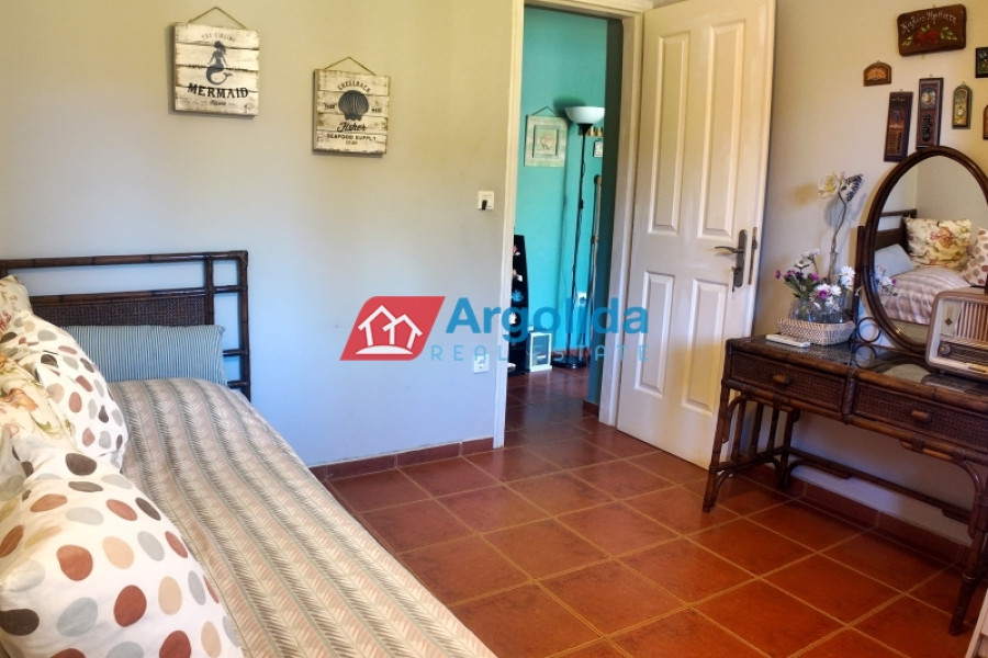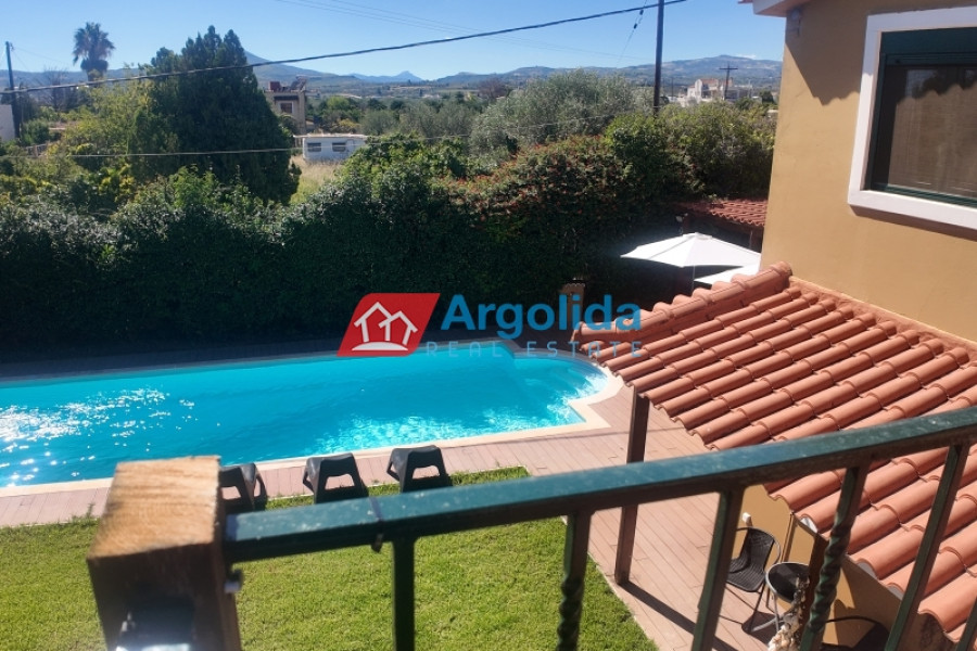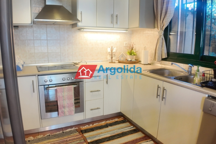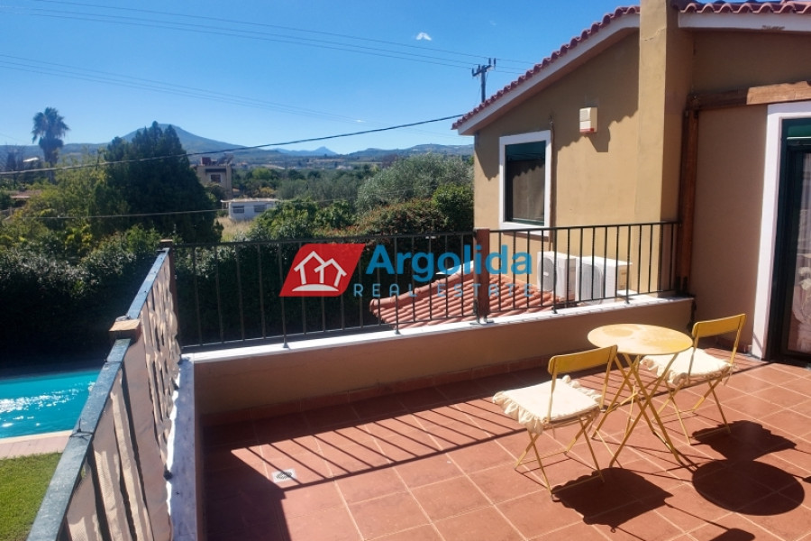 On the outskirts of Vochaiko village, just 3 km from the organized beach in Vrachati, this elegant prefabricated home sits on a 500 sqm plot surrounded by idyllic natural surroundings, offering peace and complete privacy. The beautiful, well-maintained garden envelops the property, while the large swimming pool and shaded seating area create the perfect space for relaxation, sunbathing, and endless al fresco enjoyment. The outdoor kitchen completes the experience, making it ideal for dining with friends and family. The entrance opens to a bright, open-plan living, dining, and kitchen area with direct access to the outdoor spaces and pool. On the ground floor, there is one bedroom, one bathroom, and a laundry area, while the upper floor features two bedroomswith ensuite bathrooms, including a master bedroom with a spacious terrace overlooking the garden and pool. The location offers excellent accessibility: just 5 minutes to the sea, 4 km from Zevgolateio Train Station with direct connections to Athens and the International Airport, which is alternatively 75 minutes by car. The home is offered fully furnished, with tastefuldécor, allappliances, and essential equipment, making it an ideal choice as a holiday home, permanent residence, or investment property with excellent rental potential.