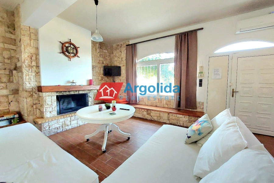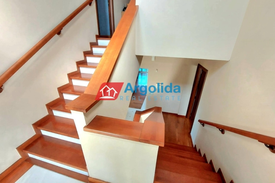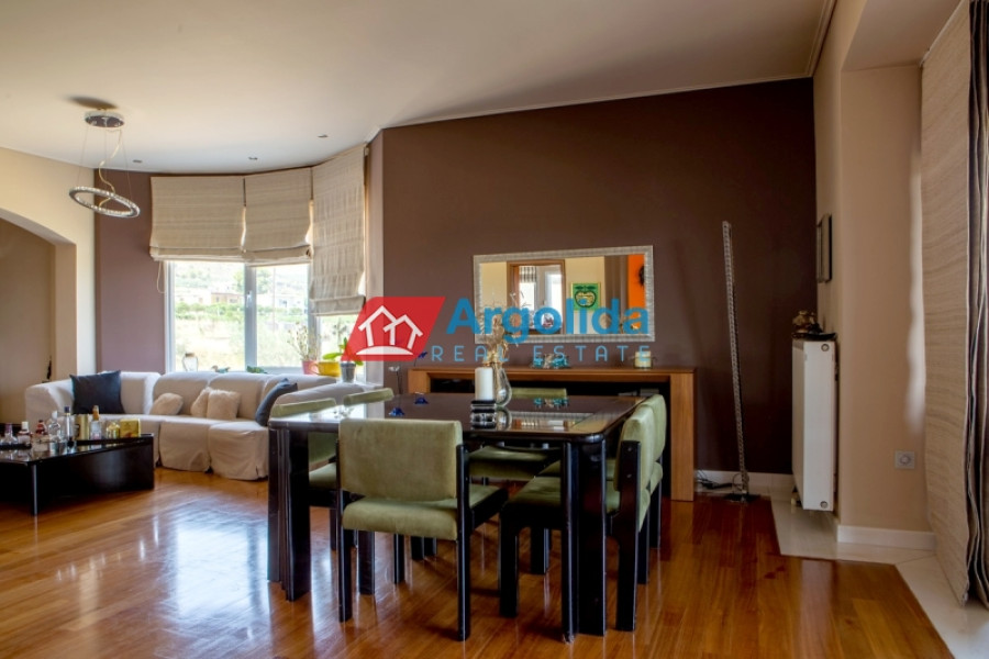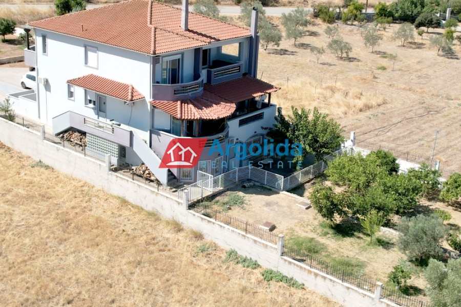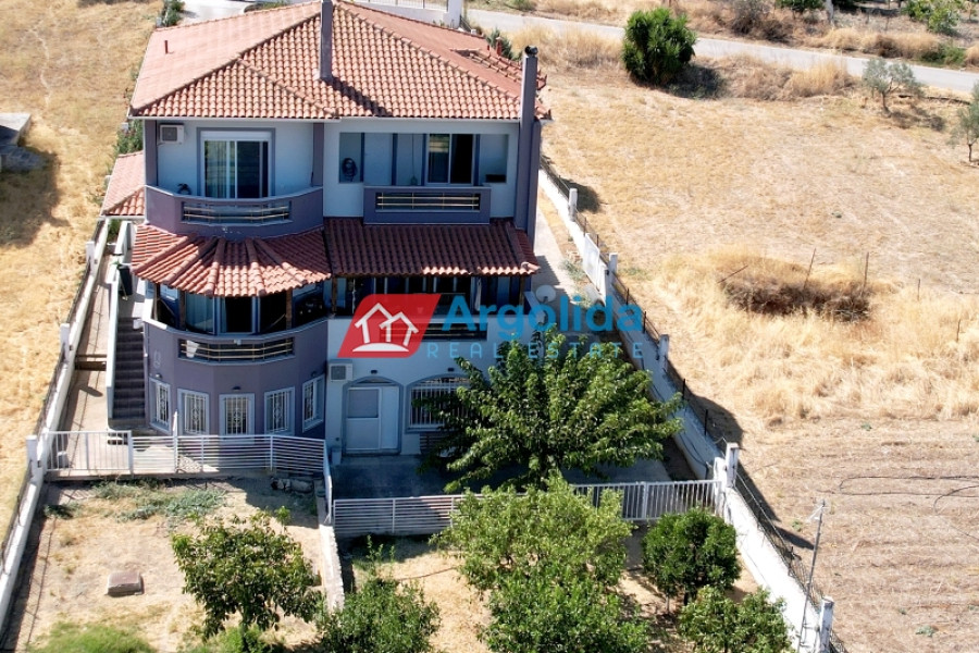 Property Code: 13525 - House FOR SALE in Korinthos Archaia Korinthos for € 800.000 . This 450.00 sq. m. House is on the Ground Floor Elevated and features 6 Bedrooms, an open-plan kitchen/living room, 3 bathrooms . The property also boasts Heating system: Autonomous heating - Oil, marble and wood floor, view of the Sea, Window frames: Aluminium, Security door, elevator, parking, a storage unit sqm, garden, fireplace, A/C, heating per level, alarm system, electrical appliances, insect screens, double-glazed windows, boiler, entry stairs, dressing room, satellite dish, CCTV cameras, open space, internal staircase. The building was constructed in 2008 Plot area: 1700 s.q. . Building Energy Rating: D Distance from sea 4000 meters, Distance from the city center: 7700 meters, Distance from nearest village: 250000 meters, Distance from nearest airport: 116000 meters, Nearest metro station at 5000 meters. An impressive three-story residence with basement garage, two storage rooms, and elevator, located in a privileged position offering panoramic views of the Corinthian Gulf and the Acrocorinth. Built on a sloping plot, the property benefits from a unique architectural layout that ensures unobstructed views. The lower level begins as a basement (with garage and storage rooms) and continues with two bedrooms (one with a built-in wardrobe), a bathroom with Jacuzzi, a storage area along the corridor, and a living room with fireplace and an open-plan Veneta Cucine kitchen with FRANKE appliances, opening directly onto the garden. This level can also function as an independent apartment. The elevated ground floor includes a spacious living room, a large SNAIDERO kitchen with FRANKE, BOSCH, and SAMSUNG appliances, a dual-aspect fireplace, one bedroom with built-in wardrobe, and a WC with shower. These areas open to a generous veranda with sea views, while the master bedroom enjoys a stunning outlook toward the Acrocorinth. The second floor features two bedrooms, each with its own bathroom (with Jacuzzi) and walk-in closet, as well as two private verandas overlooking the sea. There is also a room with a built-in library, currently used as a children’s room, with a large veranda and views of the Acrocorinth. The residence is equipped with seven air-conditioning units, central heating with boiler for hot water, alarm system, security cameras, solid doussie wood and marble flooring, and an internal staircase with InterSCALA wooden cladding. The surrounding yard is enclosed with stone walls and railings, and features around 40 trees (lemon, orange, and olive). Entrance to the property is through a remote-controlled gate. A truly unique home, ideal for families or anyone seeking luxurious living in a quiet yet strategic location.
