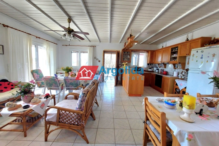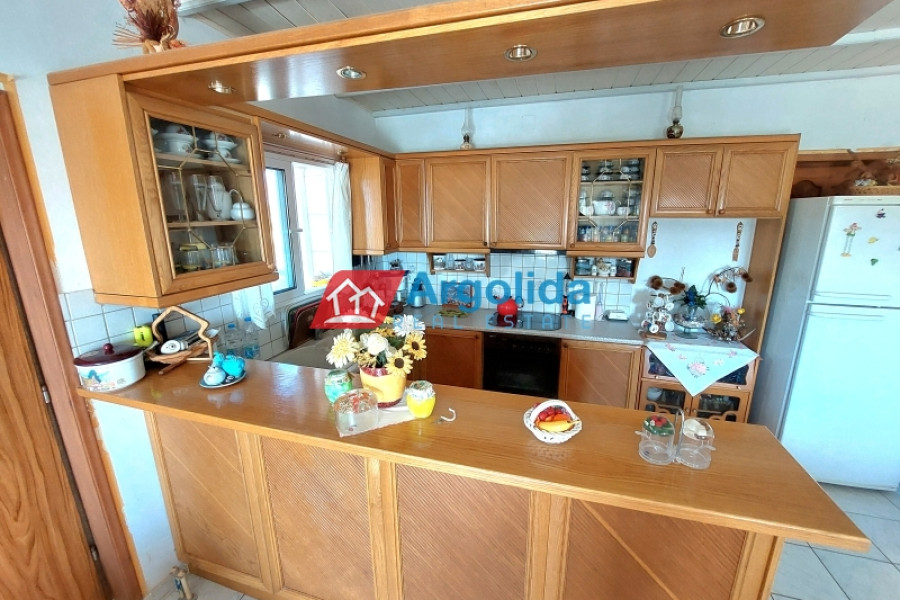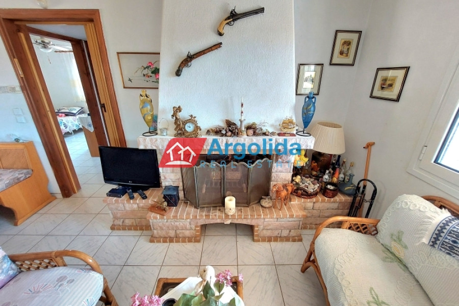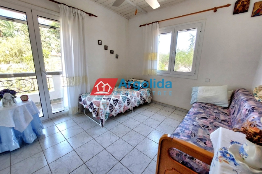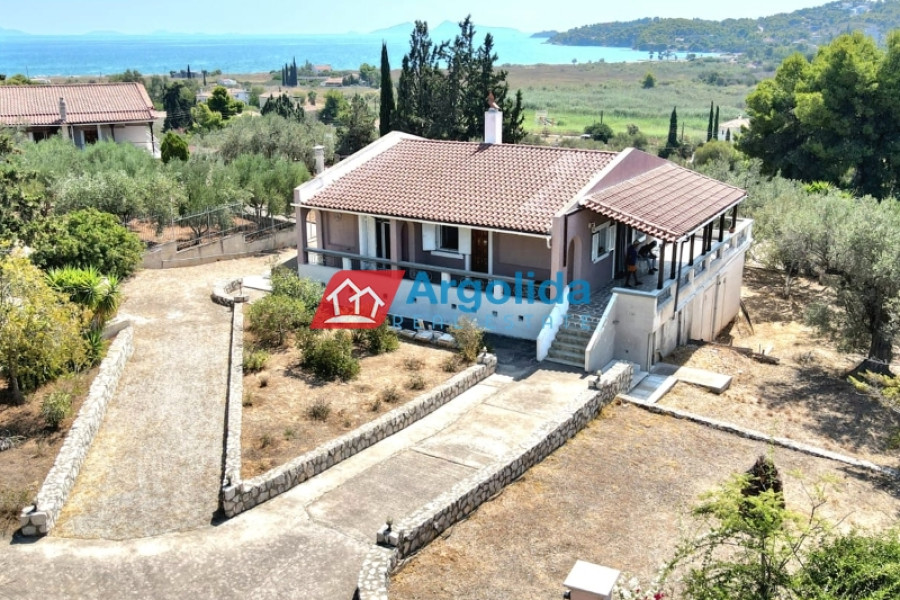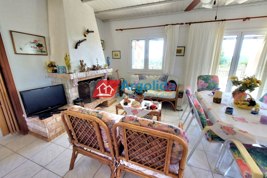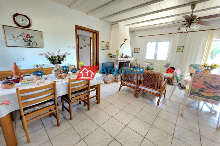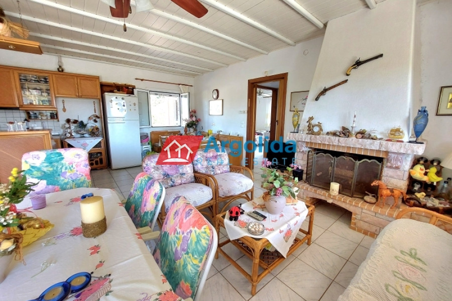 For sale in Petrothalassa, a raised ground floor detached house of 80 sq.m. on a 2,100 sq.m. plot, built in 1985 and fully renovated in 2000, featuring 3 bedrooms, living room, kitchen, bathroom, and WC, with large surrounding terraces offering unobstructed sea views, aluminum frames, tiled floors, security door with spikes, built-in wardrobes, and fireplace, while the exterior provides space for BBQ, parking, and a large 20 sq.m. storage, the property offers three-phase electricity, pre-installation for oil heating, 44 m³ water tank, 15 olive trees, and a 120 sq.m. ground floor area that can easily be converted into living space, making it ideal for a permanent or holiday home as well as tourist rental.