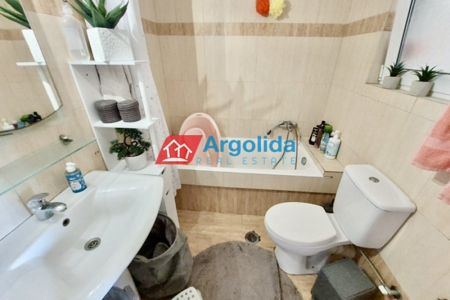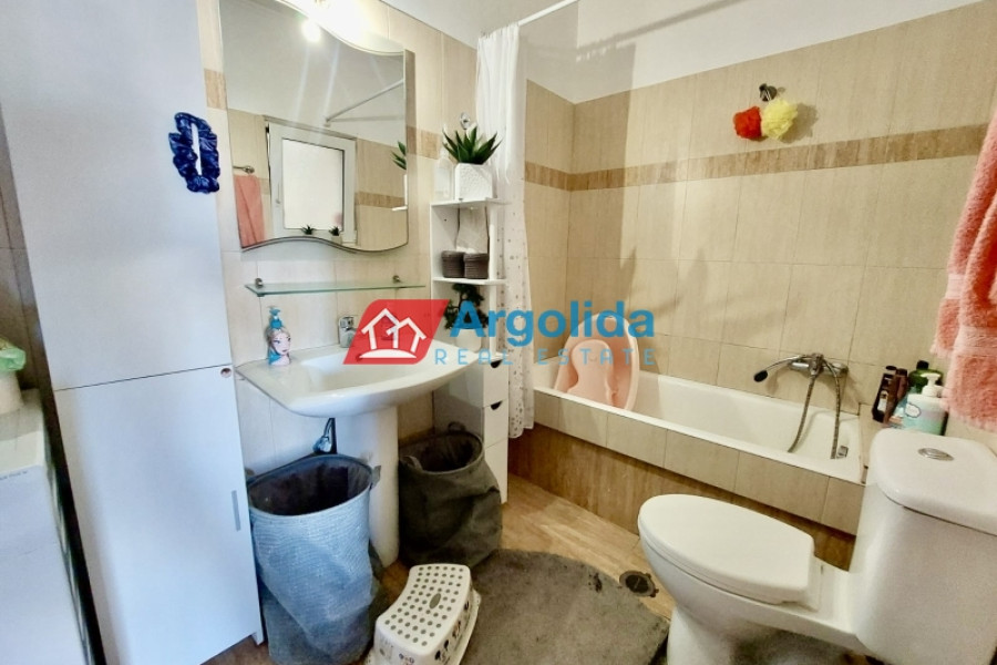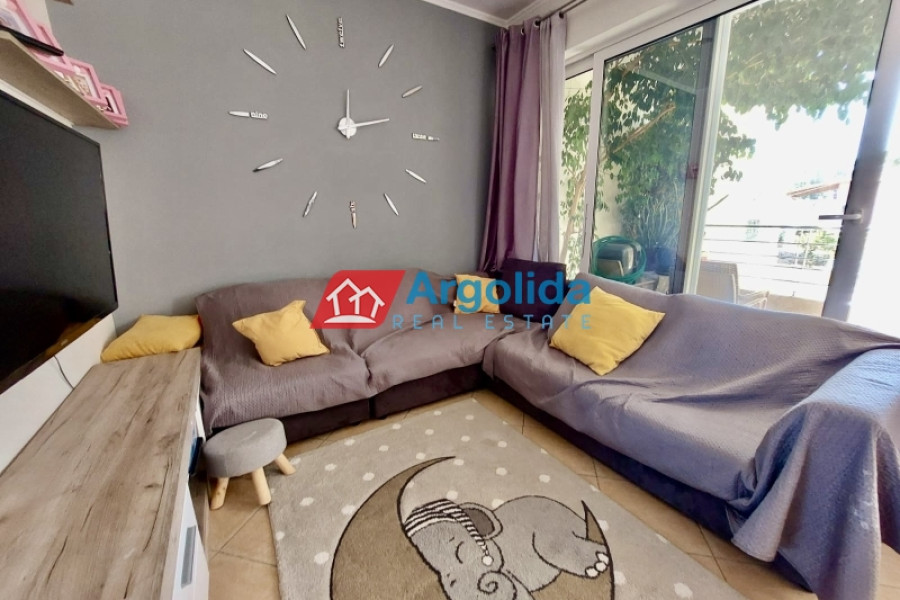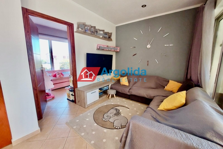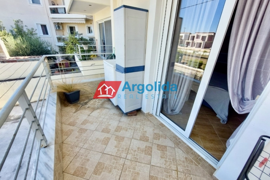 For sale: a 78 sq.m. seaside apartment in Mylos Lerna, just 10 km from the city of Nafplio, located on the 1st floor of a residential complex, in excellent condition and with a prime location only 100 meters from the beach, offering comfortable living and easy access to the town, featuring an open-plan kitchen-living-dining area with access to a large balcony, two bedrooms with built-in wardrobes, one bathroom, aluminum sliding windows with double glazing and screens, electric shutters, independent oil heating, one air conditioning unit, electric water heater, and a security door, making it an ideal choice for those seeking a seaside home near Nafplio with immediate access to the sea and local amenities.