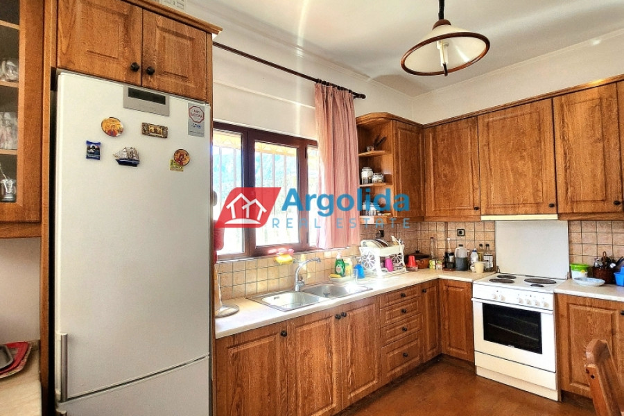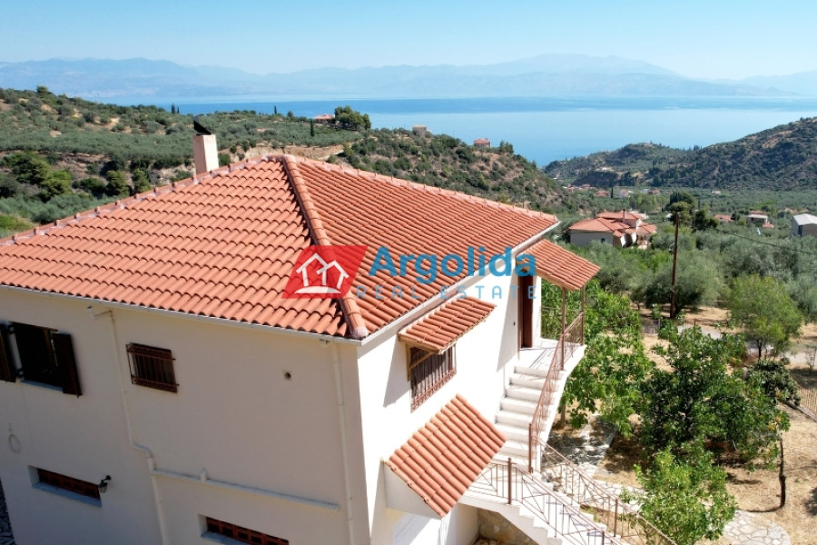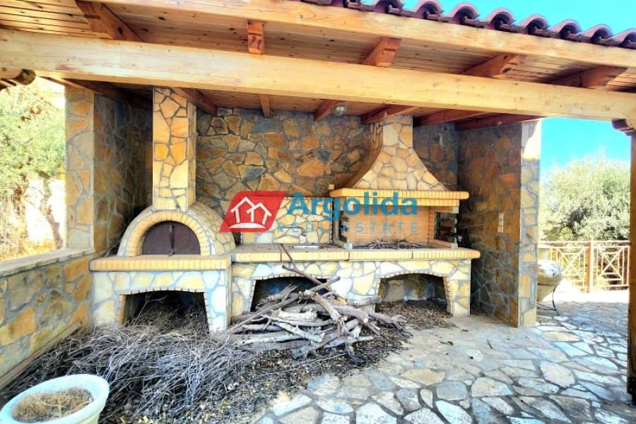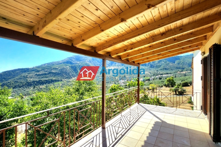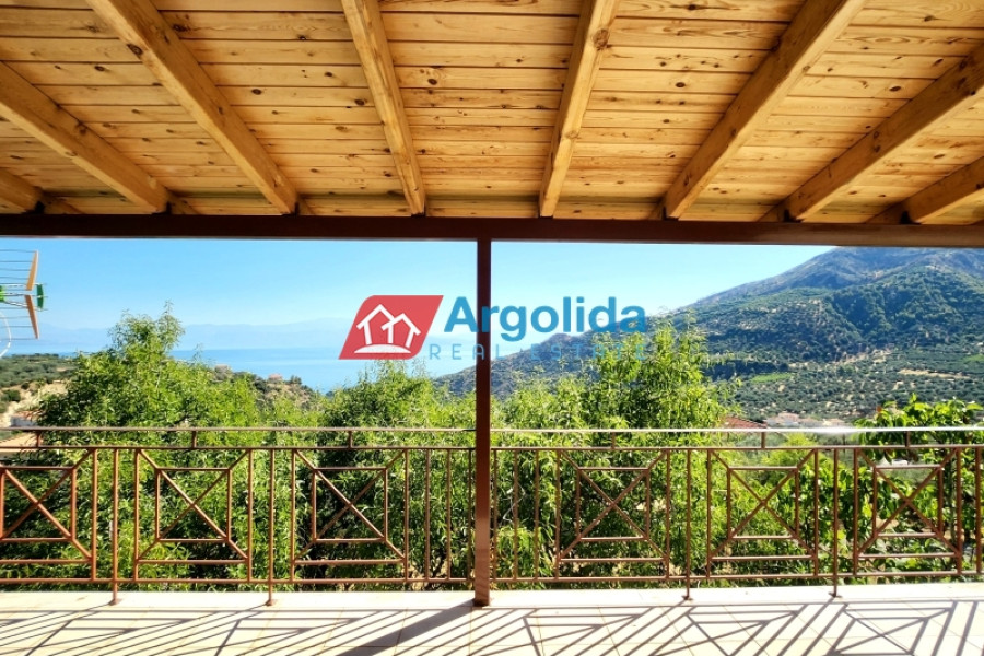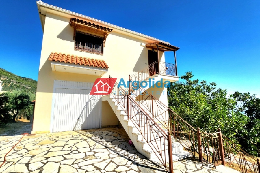 For sale: Fully furnished detached house of 150 sq.m., located in the lush, amphitheatrical, and peaceful area of Rozená, Achaia, within a corner plot of 3,500 sq.m. inside the town plan. The total land is divided into three plots: Plot 1 (1,257 sq.m.) includes the house, while Plots 2 and 3 (1,034 sq.m. & 906 sq.m.) are buildable, offering excellent investment potential. The entire property is fenced with a stone wall at the front and metal mesh around the rest, and features an automatic gate, ensuring security and privacy. Built in 2003, the house is developed across two independent levels of 75 sq.m. each. The ground floor currently functions as a closed garage and storage area, with the potential to be converted into a self-contained apartment. The upper level features a bright living room with fireplace, spacious veranda with pergola and open sea view, dining area, and a semi-separate modern kitchen with appliances. The home includes 1 bedroom, 1 bathroom, aluminum frames with double glazing and screens, security door, alarm system, and autonomous oil heating. The outdoor area is a key highlight, with irrigated olive and citrus trees, creating a beautiful and fertile Mediterranean landscape. Located in a green and tranquil neighborhood, surrounded by holiday homes and permanent residences, this property is just minutes from the sea and offers an ideal living experience with strong connection to nature. A unique opportunity for permanent residence, holiday use, or investment with future development potential.