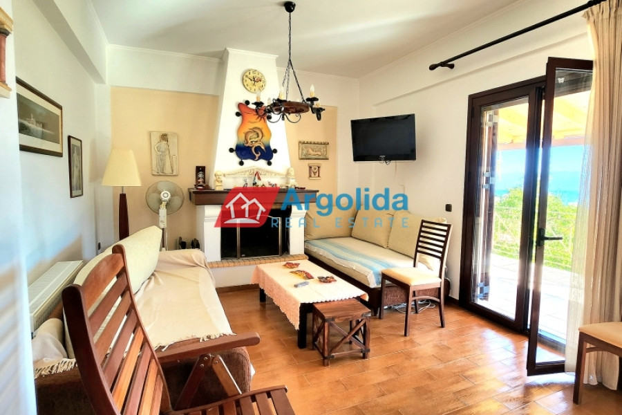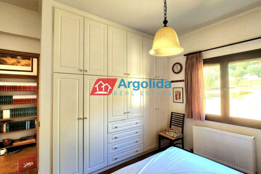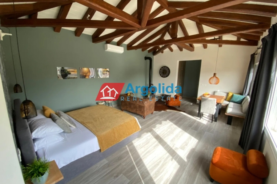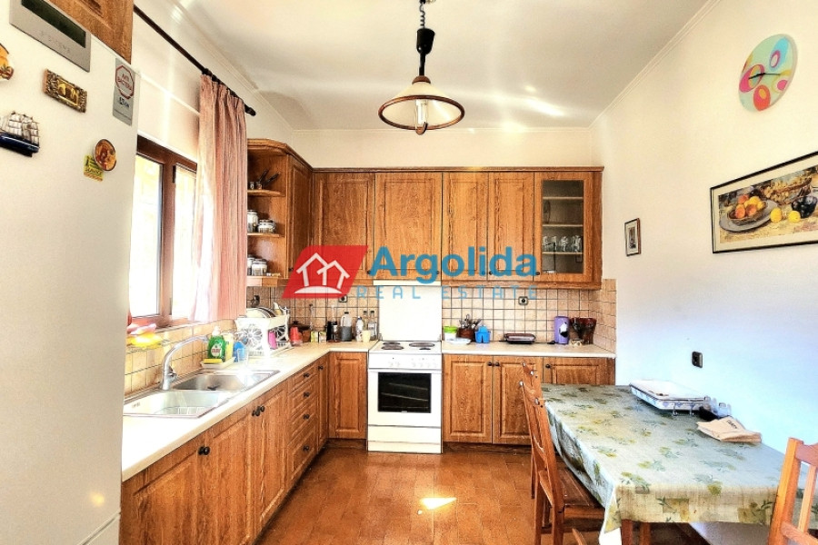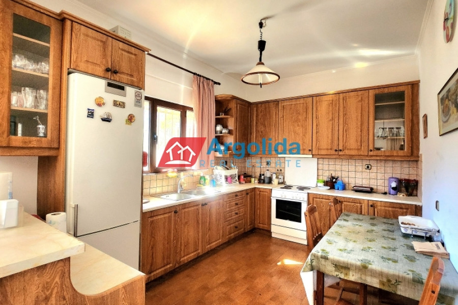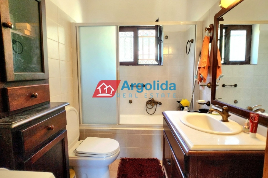 For sale: Fully furnished detached house of 150 sq.m., located in the lush, amphitheatrical, and peaceful area of Rozená, Achaia, within a corner plot of 3,500 sq.m. inside the town plan. The total land is divided into three plots: Plot 1 (1,257 sq.m.) includes the house, while Plots 2 and 3 (1,034 sq.m. & 906 sq.m.) are buildable, offering excellent investment potential. The entire property is fenced with a stone wall at the front and metal mesh around the rest, and features an automatic gate, ensuring security and privacy. Built in 2003, the house is developed across two independent levels of 75 sq.m. each. The ground floor currently functions as a closed garage and storage area, with the potential to be converted into a self-contained apartment. The upper level features a bright living room with fireplace, spacious veranda with pergola and open sea view, dining area, and a semi-separate modern kitchen with appliances. The home includes 1 bedroom, 1 bathroom, aluminum frames with double glazing and screens, security door, alarm system, and autonomous oil heating. The outdoor area is a key highlight, with irrigated olive and citrus trees, creating a beautiful and fertile Mediterranean landscape. Located in a green and tranquil neighborhood, surrounded by holiday homes and permanent residences, this property is just minutes from the sea and offers an ideal living experience with strong connection to nature. A unique opportunity for permanent residence, holiday use, or investment with future development potential.