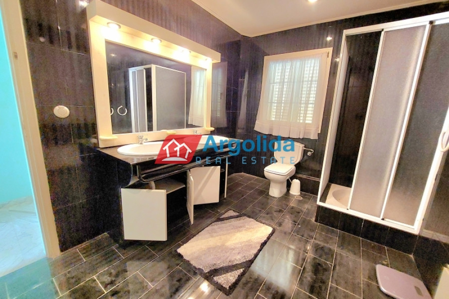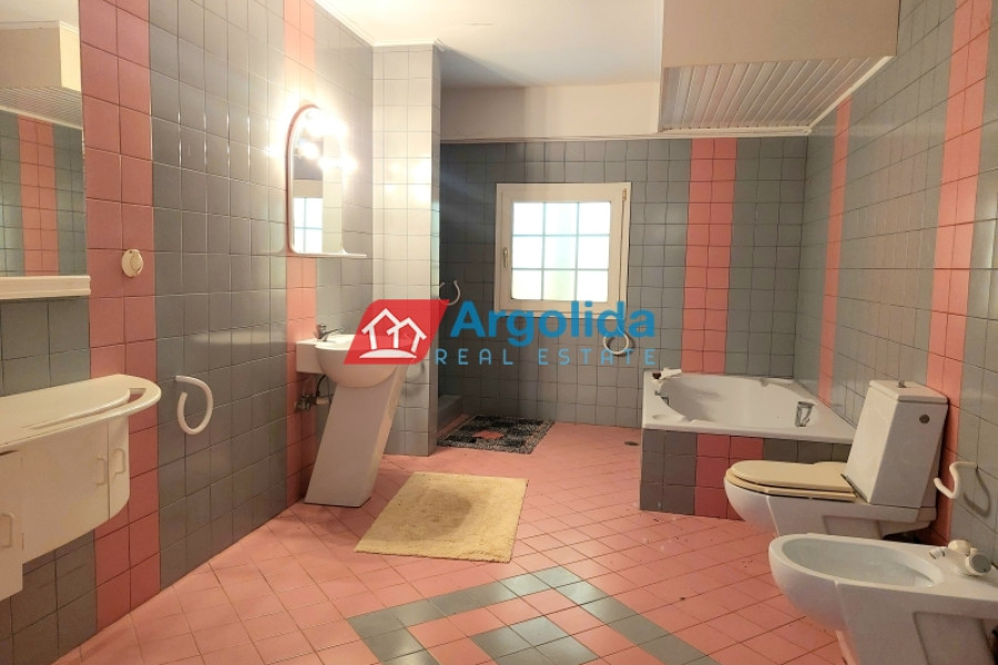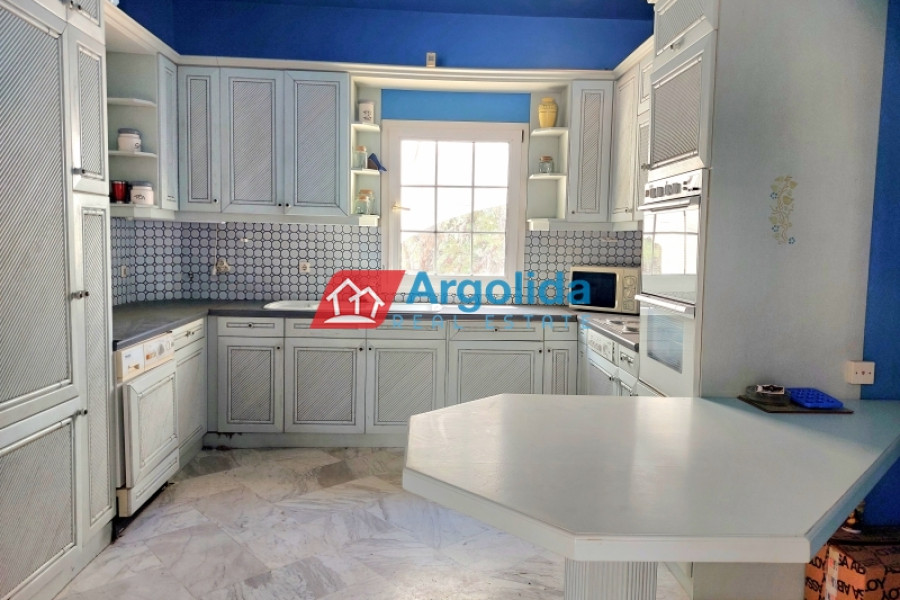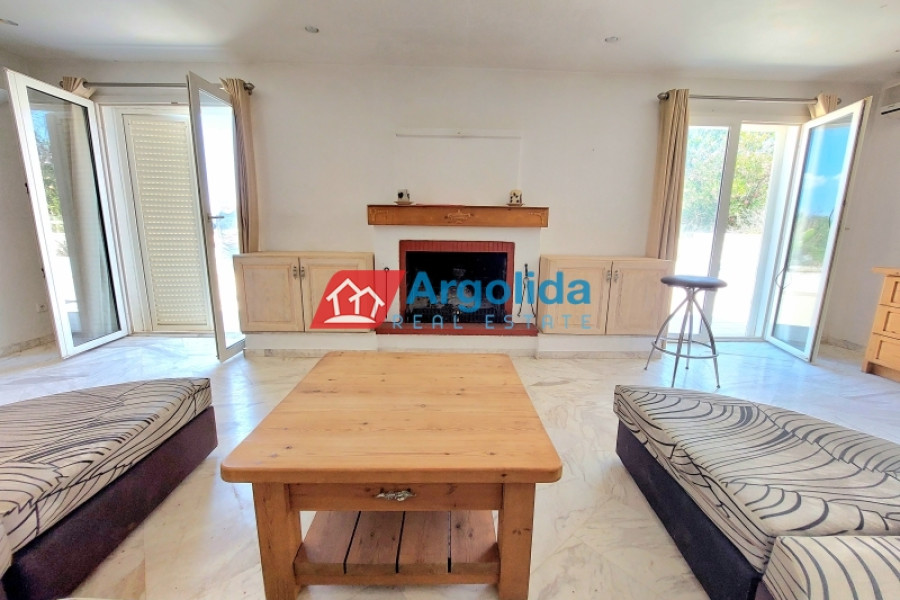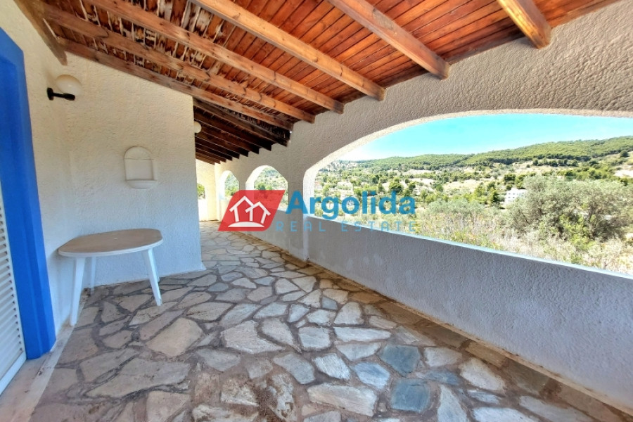 Under Legal and Technical Due Diligence - In Thyni, Kranidi, one of the most peaceful and privileged areas of Argolis, this 2-level detached house with internal staircase, measuring 210 sq.m., is for sale, set within a private plot of 8,000 sq.m. offering unobstructed panoramic sea views and surrounded by lush natural scenery. The residence includes 3 bedrooms, a spacious living room, a fully equipped kitchen, and 2 bathrooms, providing a comfortable and functional living space that harmonizes privacy with the beauty of the landscape. Built in 1981, and rated Energy Class D, the home features A/C units, fireplace, electric heating per level, double-glazed aluminum windows, marble and tile floors, and built-in wardrobes. The property’s greatest advantage is its outdoor living environment, highlighted by a mature Mediterranean garden, a private jacuzzi, a stone-built BBQ, and ample private parking, all designed to offer relaxation, serenity, and quality outdoor living. There is also a 5 sq.m. storage room, and easy access via an asphalt road. The beach is only 1,000 meters away, the nearest organized village is at 5 km, and the Athens International Airport is 200 km away. This is a unique opportunity to acquire a property that combines a prime location, absolute privacy, and breathtaking sea views, making it perfect as a permanent residence, a vacation retreat, or a premium investment in the heart of the Greek Riviera.