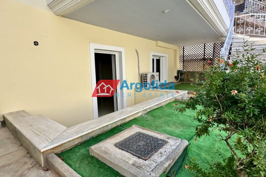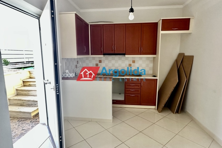 In the developing area of Kourti in Nafplio, a ground floor (semi-basement) apartment of 51 sq.m. is available for sale, in excellent condition. It features a private entrance and a private courtyard, making it ideal for permanent residence, holiday use, or investment. The apartment includes one bedroom with a built-in wardrobe, an open-plan kitchen and living area, one bathroom, and is equipped with an A/C unit for cooling and heating, autonomous oil heating, and aluminum window frames with double glazing and insect screens, ensuring thermal insulation and year-round comfort. Additionally, there is an uncovered internal area that can be used as a storage space, adding practicality to the property. Located in a quiet residential neighborhood, the apartment is just a short distance from a supermarket and only 150 meters from the Nafplio – Nea Kios coastal road, providing easy access to the city center, the sea, and various points of interest. An excellent opportunity for those seeking an affordable and high-quality property in one of Nafplio’s most desirable areas.