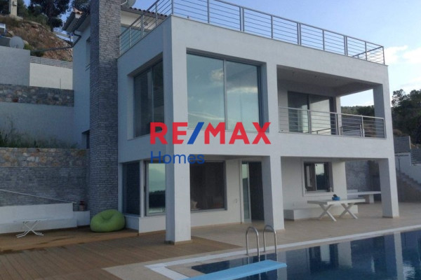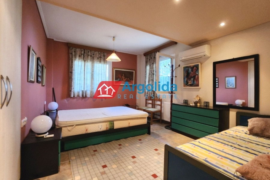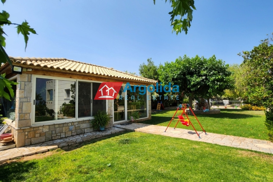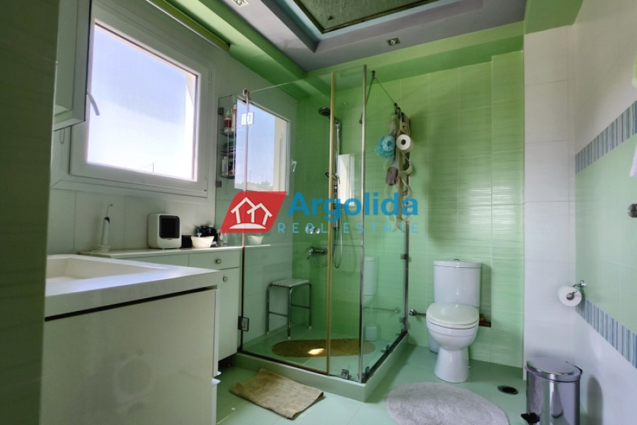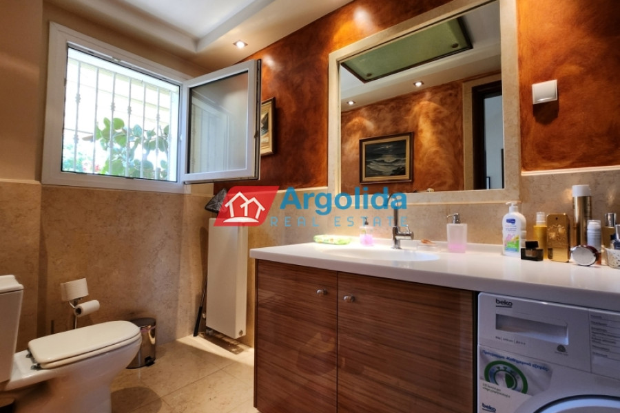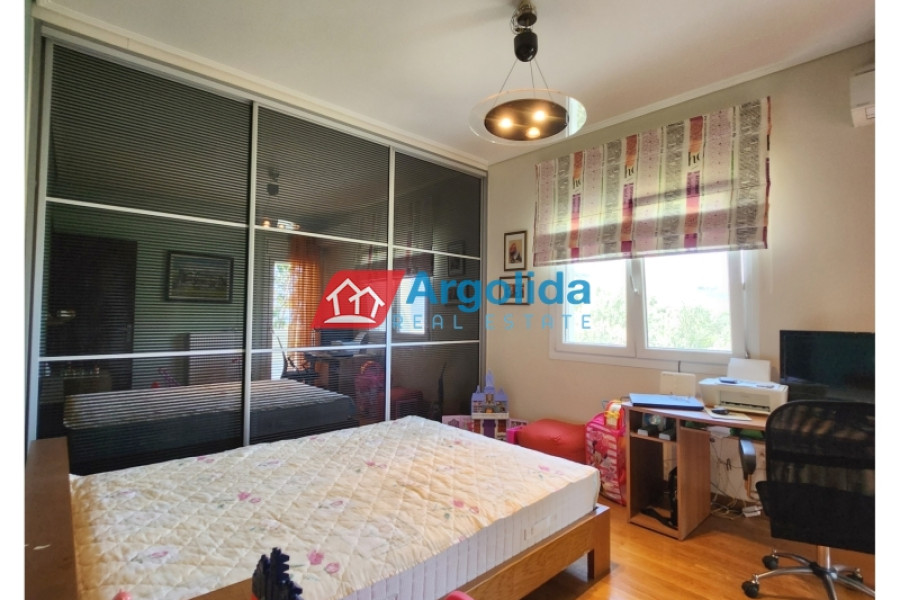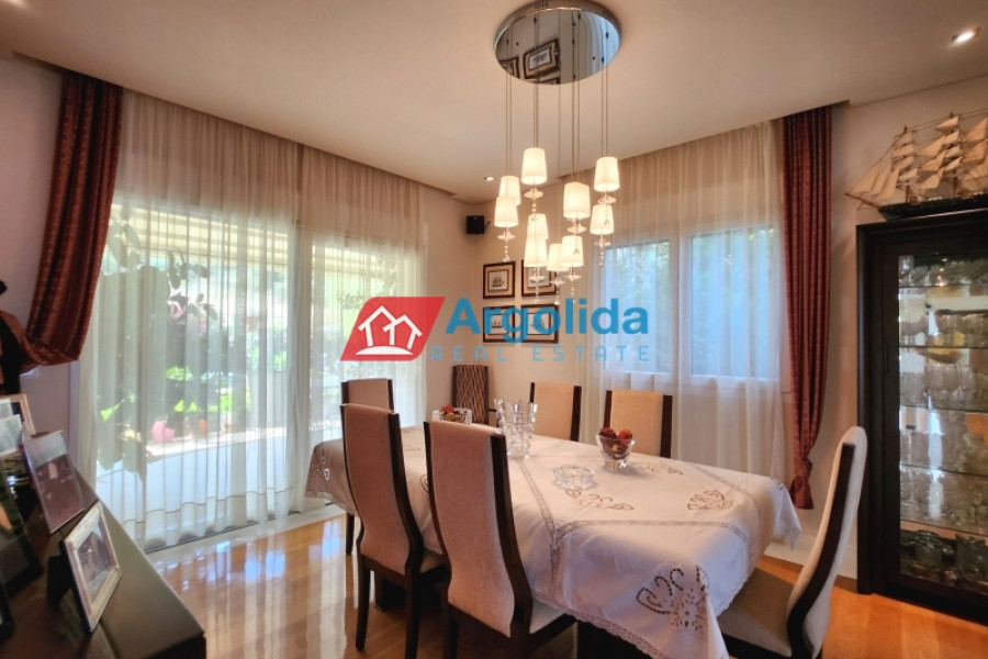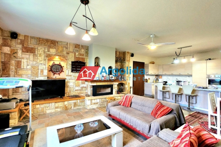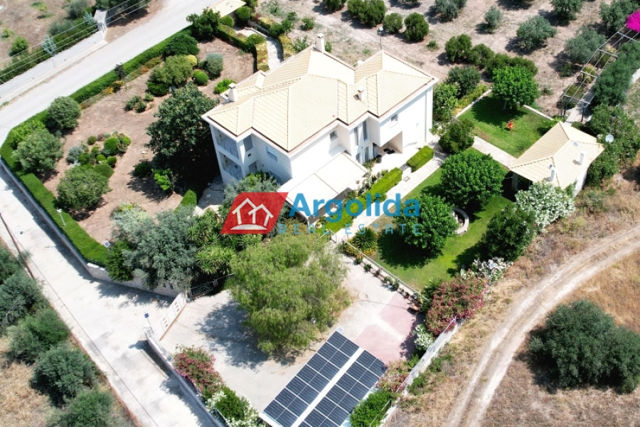 In a privileged location in Ancient Corinth, a luxurious three-level detached house of total area 422 sq.m. is for sale, situated on a privately owned plot of 7,000 sq.m. with stunning, unobstructed views of the Corinthian Gulf and the historic Castle of Ancient Corinth. The property consists of a main residence of 220 sq.m. on two levels and an independent, fully functional apartment of 70.55 sq.m. in the semi-basement with a separate entrance. The two-level main residence is spread over the ground floor and first floor and includes on the ground floor a large living room with fireplace, lounge, dining room, fully equipped kitchen in a separate space, storage room, and WC. On the first floor, there is a master bedroom with en-suite bathroom and walk-in closet, two additional spacious bedrooms, and an extra bathroom with jacuzzi. The semi-basement features a second living room with kitchen and energy-efficient fireplace, a bedroom, bathroom, as well as a cellar and storage rooms accessible both internally and externally.