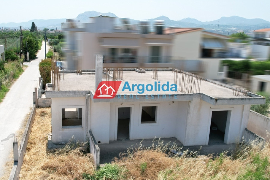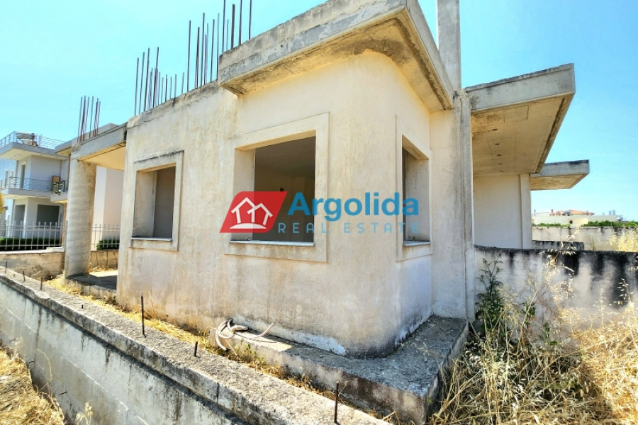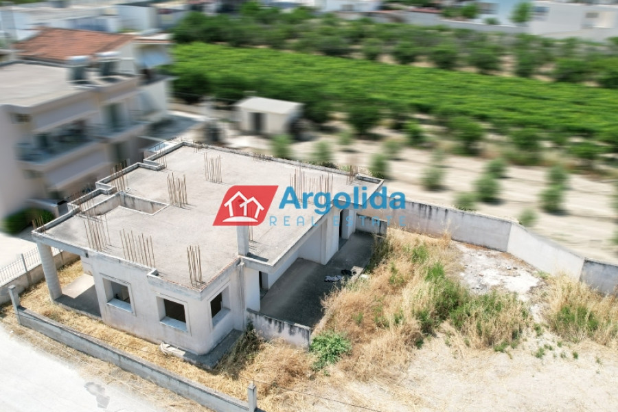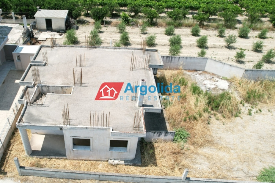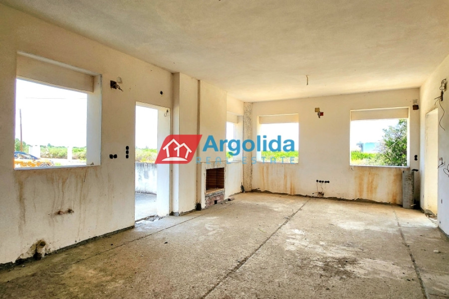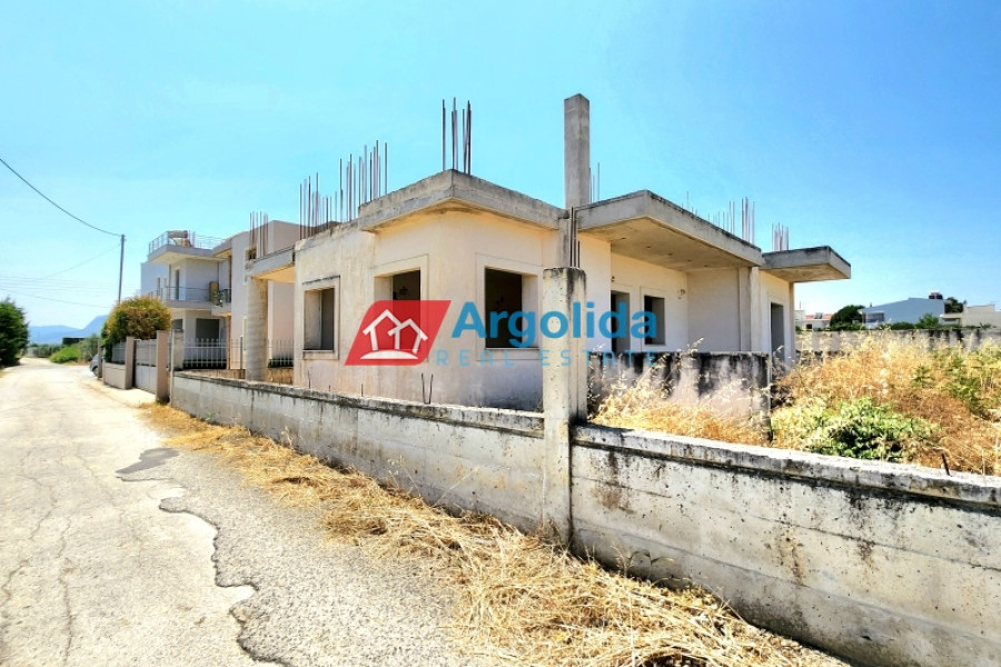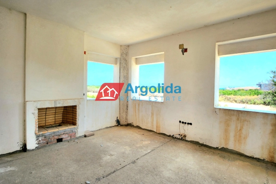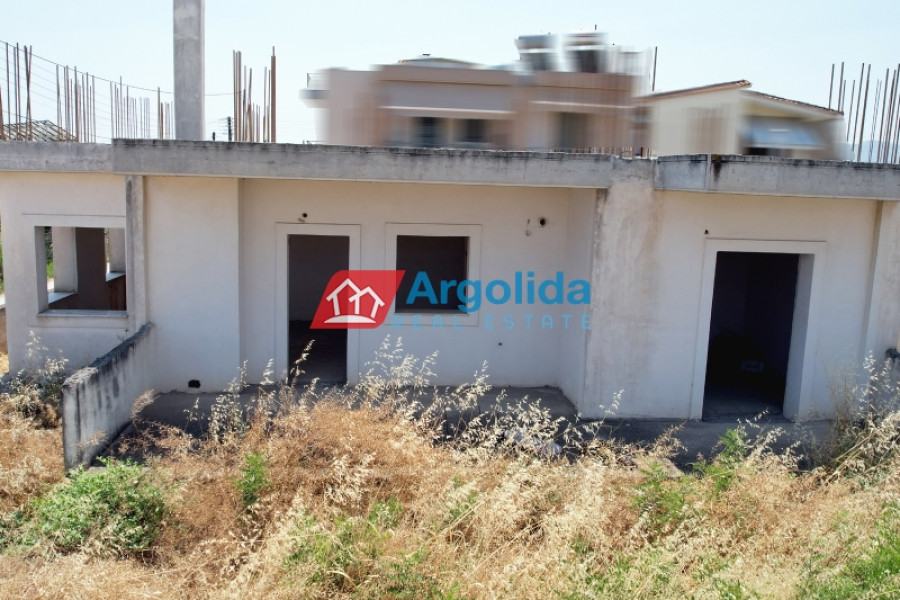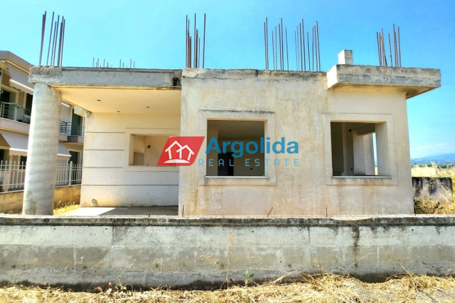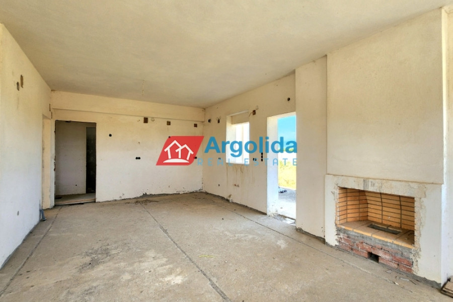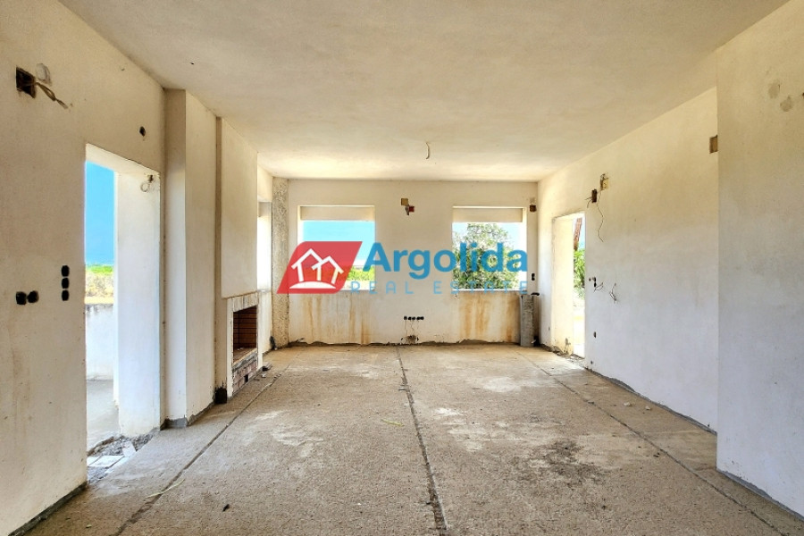 In a quiet and green area of Vocha, Vrachati, just 900 meters from the coastline, a ground-floor unfinished villa of 120 sq.m. is for sale on a spacious 1,200 sq.m. plot with olive trees and the possibility to expand up to 400 sq.m., thanks to the right to build a second floor. Built in 2010, the house offers 3 bedrooms, a spacious living room with fireplace, functional kitchen and bathroom. The property enjoys unobstructed views, private parking for two cars, and ample space for a garden or outdoor activities. The location combines tranquility with easy access to local amenities, just 500 meters from a developed settlement with shops, 11 km from Corinth and Kiato, and approximately 120 km from Athens International Airport. Its unfinished condition gives the new owner a unique opportunity to complete the house according to personal taste, making it ideal for a permanent home, holiday residence, or investment near the sea.