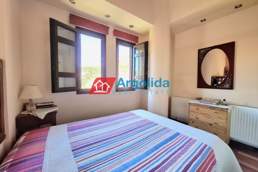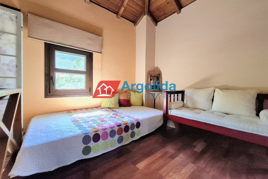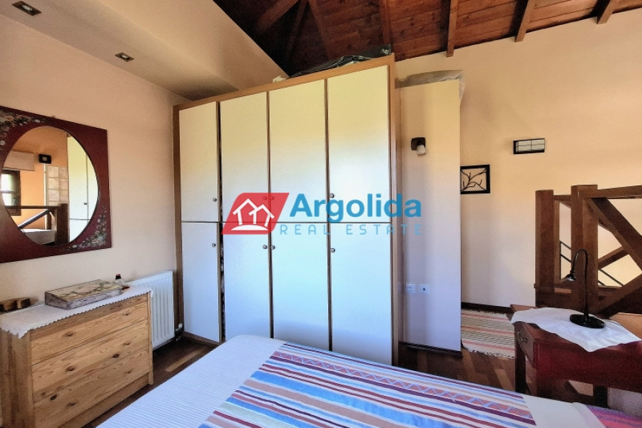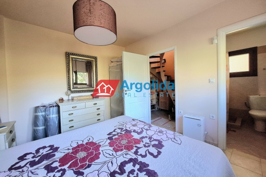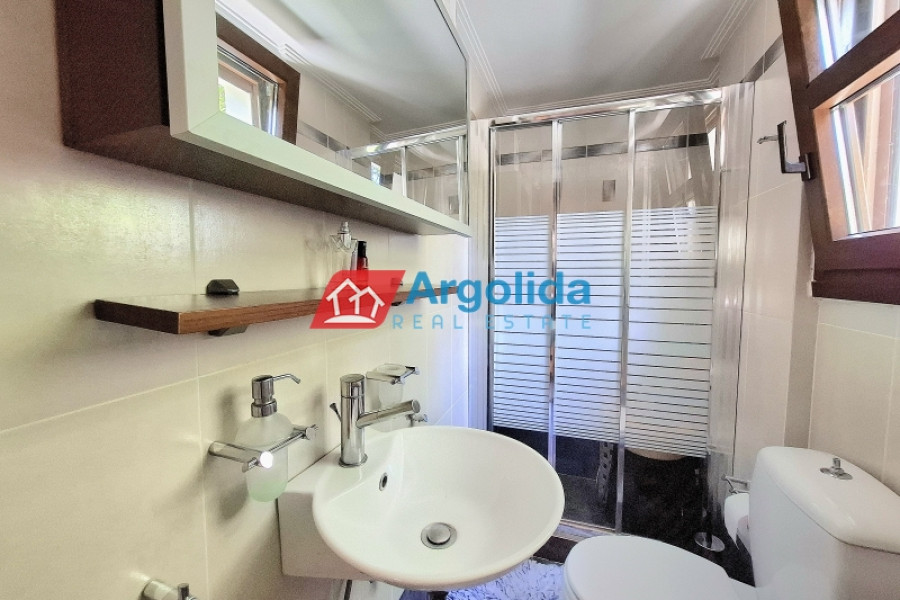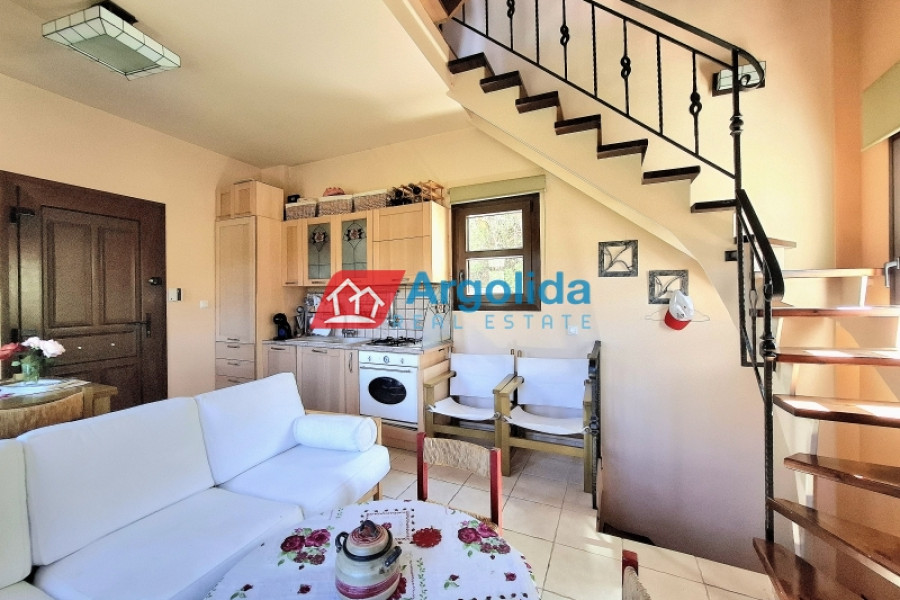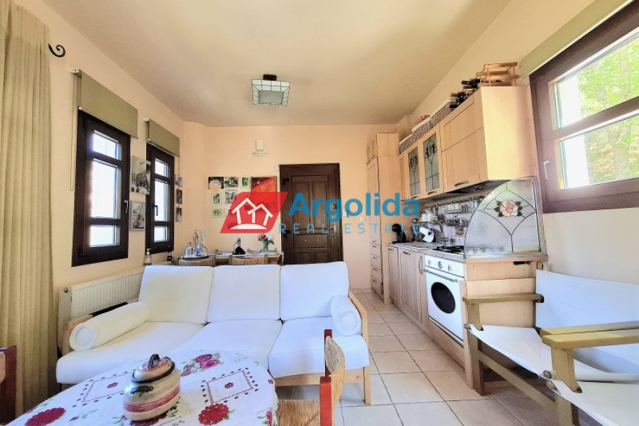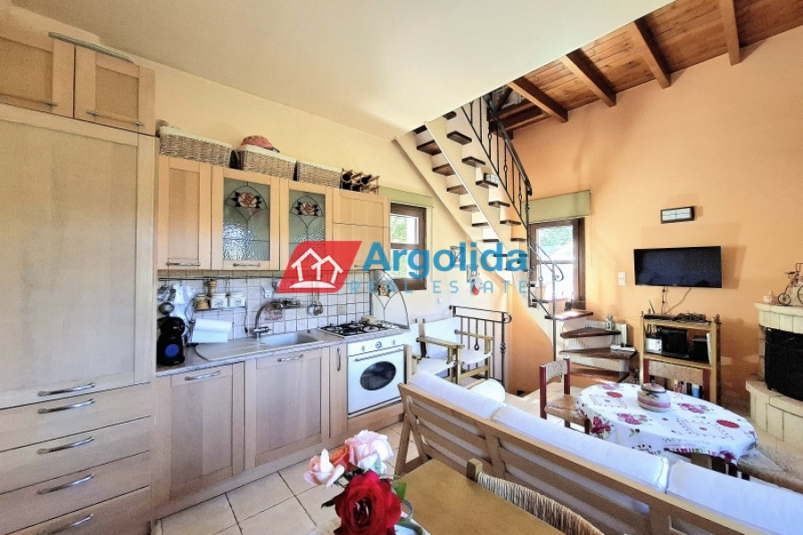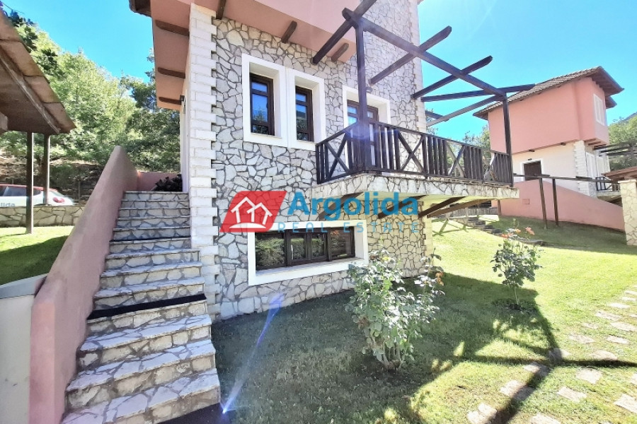 Beautiful 78 sqm maisonette for sale just 4 kilometers from Kalavryta, featuring exclusive use of a 40 sqm garden, perfect for those seeking comfort and quality living in a green environment. The property is in excellent condition and includes an elevated ground floor with an open-plan kitchen and living-dining area with a fireplace, plus a balcony offering unique views of the surrounding mountains. The semi-basement houses one bedroom with a private bathroom, while the first floor includes a second bedroom with built-in wardrobes, an additional bathroom, and a small sitting area. This maisonette is part of a complex of five similar residences and comes with an open parking space for one car, providing security and shared amenities. Technical features such as excellent construction quality, functional layout, and the energy-efficient fireplace enhance the property's value and efficiency. Additionally, its prime location—only 450 meters from the Odontotos train station, 18 km from the Kalavryta Ski Center, and 40 km from the organized beach of Akrata—makes it an ideal choice for investment or a vacation home.