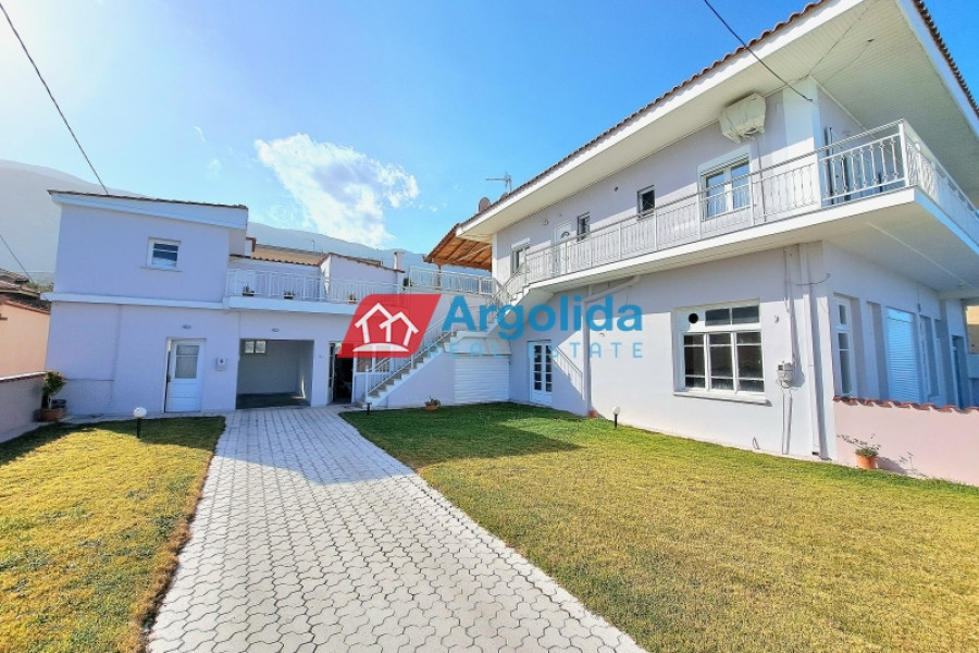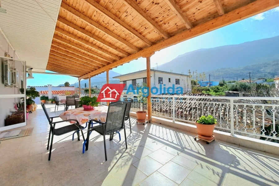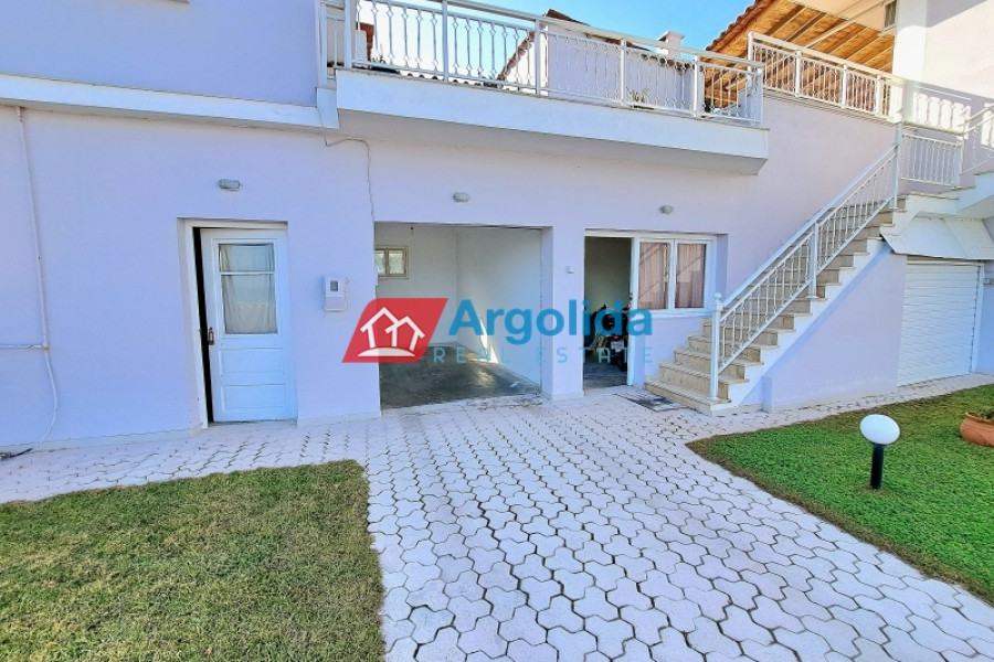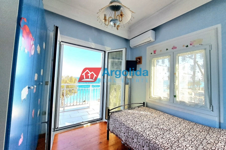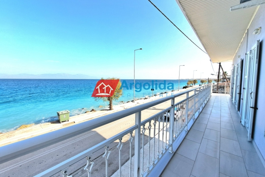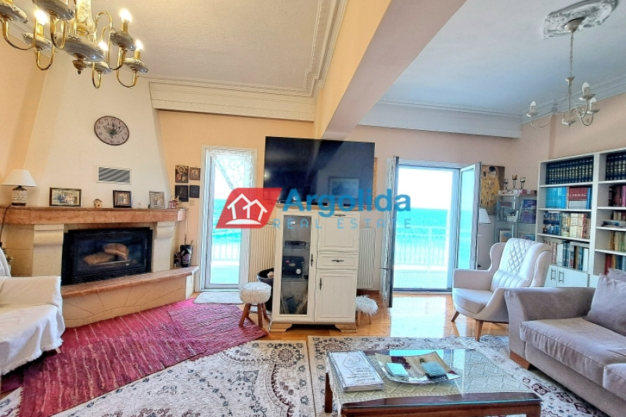 In Kato Pitsa, just 10 km from Xylokastro, a renovated top-floor apartment is for sale, boasting unobstructed sea views of the Corinthian Gulf and direct proximity to the beach. The main residence, located on the first floor, offers 150 sq.m. of living space, including a spacious living room with dining area and fireplace, an open-plan kitchen, four bedrooms with built-in wardrobes, laundry room, one bathroom, two WCs, and a large 35 sq.m. veranda with a wrap-around balcony overlooking the sea. The property was partially renovated in 2021 and is in excellent condition. On the ground floor, there are four large storage rooms (200 sq.m.), which can be converted into separate apartments with direct access to a garden and the beach — an ideal setup for rental exploitation. A large enclosed garage for three vehicles is also included, making the property perfect for families or investors. Located on the coastal road, the property offers easy access to the suburban railway station (10 km) with direct connection to Athens and the airport, and combines prime location, comfort, and investment potential for either permanent residence or holiday home use.