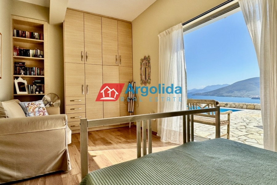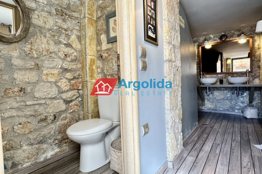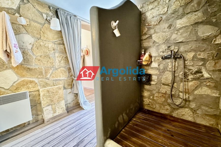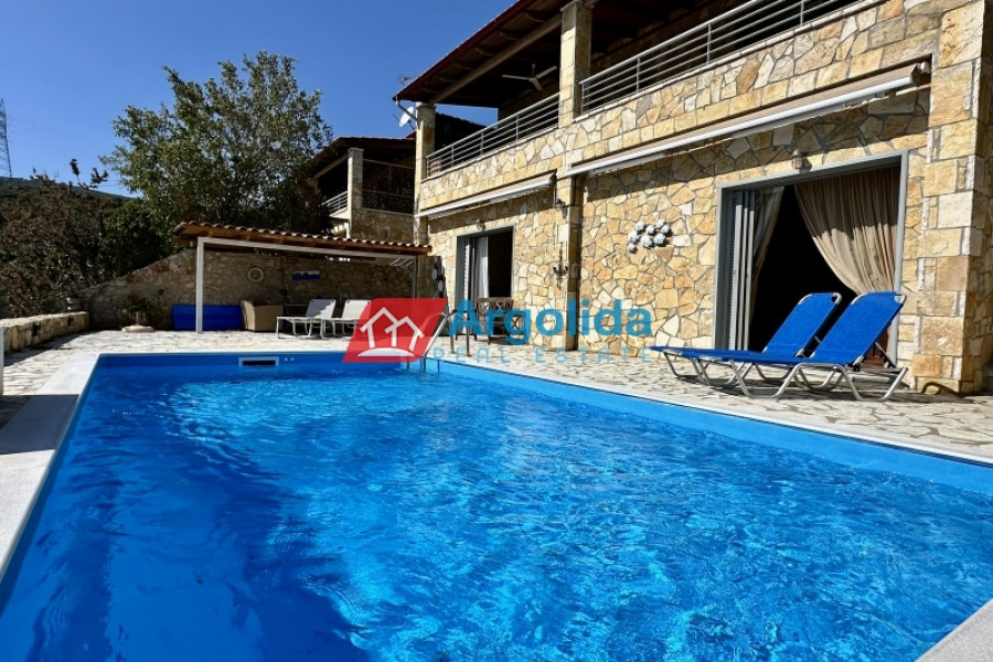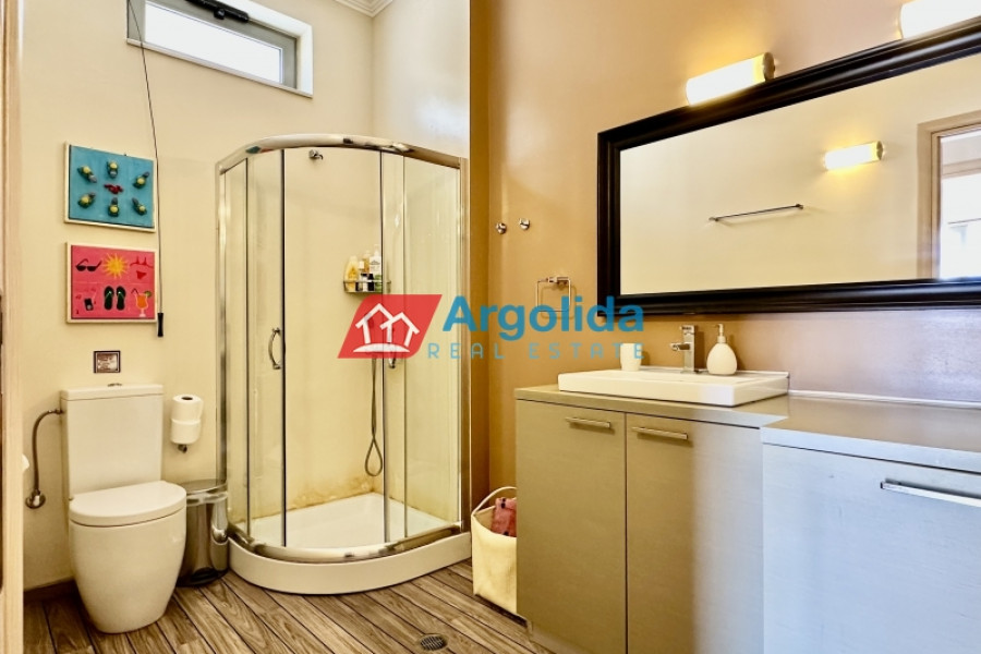 At a distance of 4 kilometers from the seaside settlement of Kiveri, near Astros and Nafplio, a modern and fully furnished two-level home is available for sale. It is a quality-built and extremely well-maintained residence of 2009, with a total area of 172 sq.m., on a plot of 240 sq.m. just 350 meters from the sea, offering unobstructed views and a unique sense of tranquility. Its modern design is highlighted by the quality construction materials and interior layouts. It consists of three (3) bedrooms with built-in wardrobes, 2 bathrooms, a spacious living room with fireplace in an open space with the equipped kitchen, while the attic adds additional functionality and style. The sliding aluminum frames with double glazing ensure energy efficiency, while the tiled floors add modern aesthetics. Outside, the private garden with swimming pool and BBQ create an ideal environment for relaxation and entertainment. The large terrace allows for unobstructed enjoyment of the view, while the spacious parking for 2 cars and the outdoor storage room offer practical storage solutions. The location of the residence is extremely privileged, combining the tranquility of the seaside landscape with easy access to nearby beaches. The detached house is an excellent investment choice, as the area shows increased demand for short-term rental accommodation, offering significant yield prospects. It is located 19 km. from Nafplio, 10 km. from Astros and 175 km. from Athens International Airport, making it the ideal choice for a holiday home or permanent residence. A unique opportunity for those looking for a modern, comfortable and preferentially located residence by the sea!