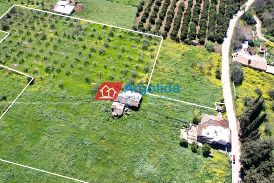 RESERVED – Under Legal and Technical Due Diligence - FOR SALE is a single-level detached house of 107 sq.m. located on a large, frontage plot of 13,000 sq.m. in an out-of-town area near Nafplio. The house includes 3 bedrooms, a living room, kitchen, and bathroom. Built in 1970, it requires significant renovation as it has been uninhabited for a long time. The 13,000 sq.m. land enjoys an excellent location close to Nafplio, with easy access via main roads. The area offers a quiet and natural environment, ideal for residential or commercial development. The property has remaining building rights, allowing new construction or housing development, providing great investment and exploitation potential. Immediate access to Nafplio city guarantees easy reach to all services and amenities, making it perfect for those seeking the tranquility of the countryside combined with urban connectivity.