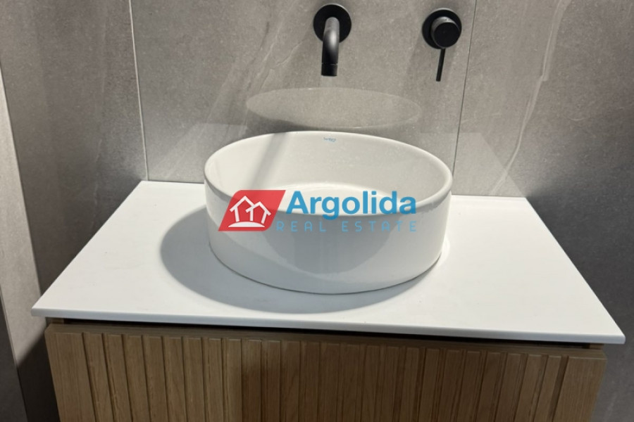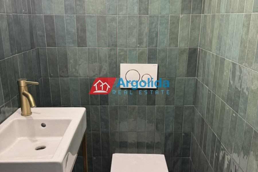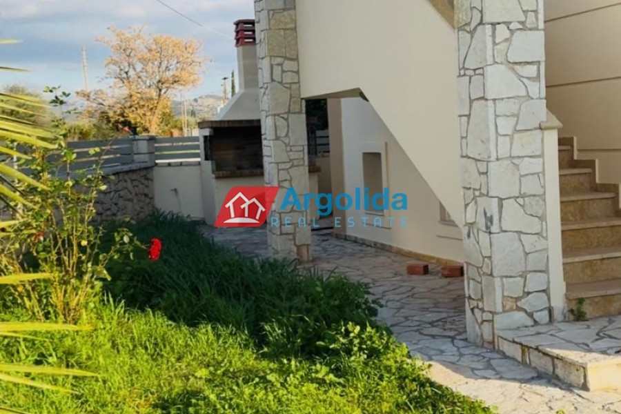 In the sought-after area of Nea Tiryntha, very close to Nafplio, a fully renovated 198 sq.m. maisonette is offered for sale, ideal for permanent residence, holiday home or investment. Built in 2013 and renovated in 2024, the property combines modern comfort with functionality and quality construction. The maisonette features 3 spacious bedrooms, a bright open-plan living room with kitchen, 2 bathrooms and 1 WC, as well as an internal staircase leading to an additional playroom, offering flexible living options. It includes autonomous oil heating, fireplace, air conditioning units, solar water heater, aluminium window frames with double glazing and insect screens, security door, built-in wardrobes and tiled floors. The property is exceptionally bright, offering openness and mountain views, creating a calm and pleasant living environment. Outdoors, it boasts a beautifully landscaped paved courtyard with BBQ, perfect for relaxation and entertaining, while the tiled roof adds a timeless aesthetic. The location is highly convenient, just 400 metres from the settlement of Tiryntha, approximately 6 km from the sea and the town of Nafplio, and 165 km from Athens International Airport, making this property an excellent choice for residential use or real estate investment in Argolida.