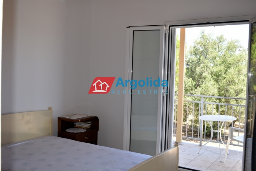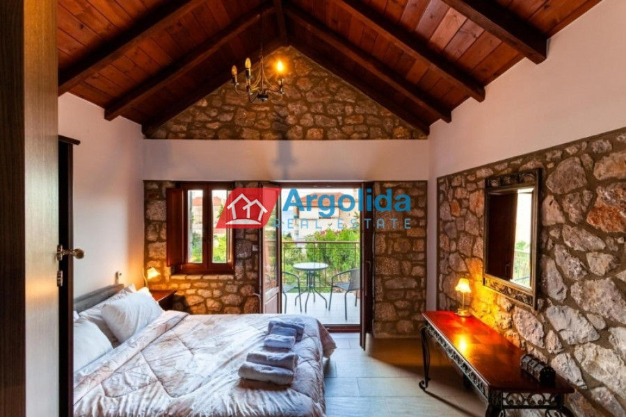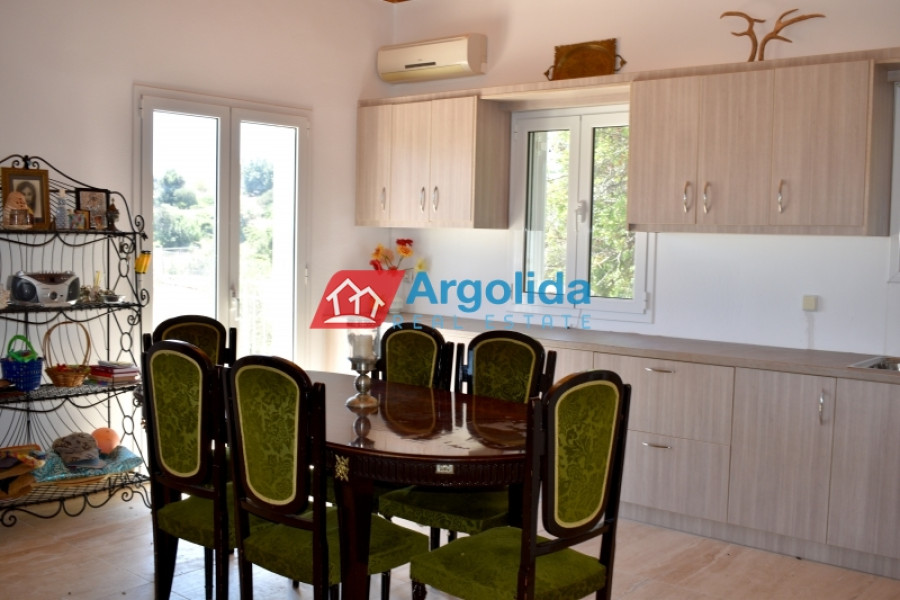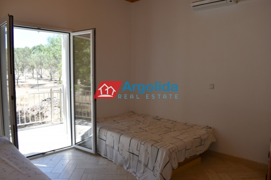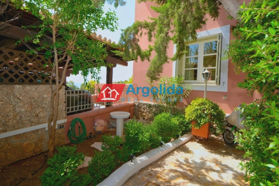 For sale is a 115 sq.m. villa on a 2,009 sq.m. plot in the picturesque seaside area of Ermioni, offering a unique combination of tranquility, natural beauty and easy access to the sea, the property features frontage on two streets and two independent entrances, ideal for permanent or holiday residence and with potential for guest accommodation or tourist use, developed on two levels: the raised ground floor of 80 sq.m. includes a combined kitchen-living area with fireplace, two bedrooms, bathroom, and luxury natural stone flooring with aluminum frames, while the lower 35 sq.m. level, with separate entrance, has a living room and one bedroom for full independence, the plot includes a 15 m³ water tank and storage space, located just 1.8 km from Petrothalassa beach, 2.3 km from Sentoni and 5 km from Kouverta beach, making it an excellent choice for investment or permanent residence.