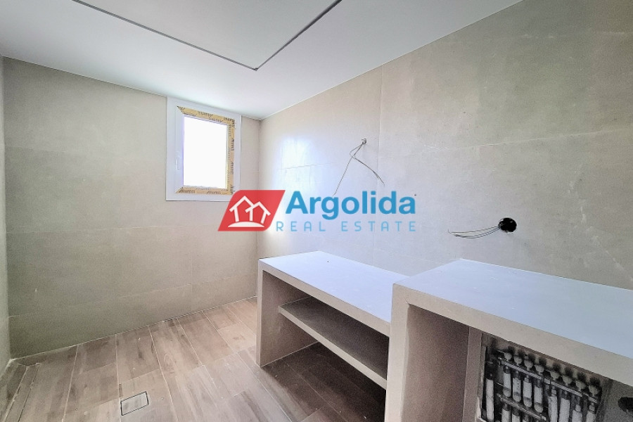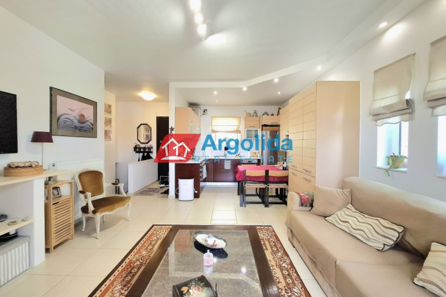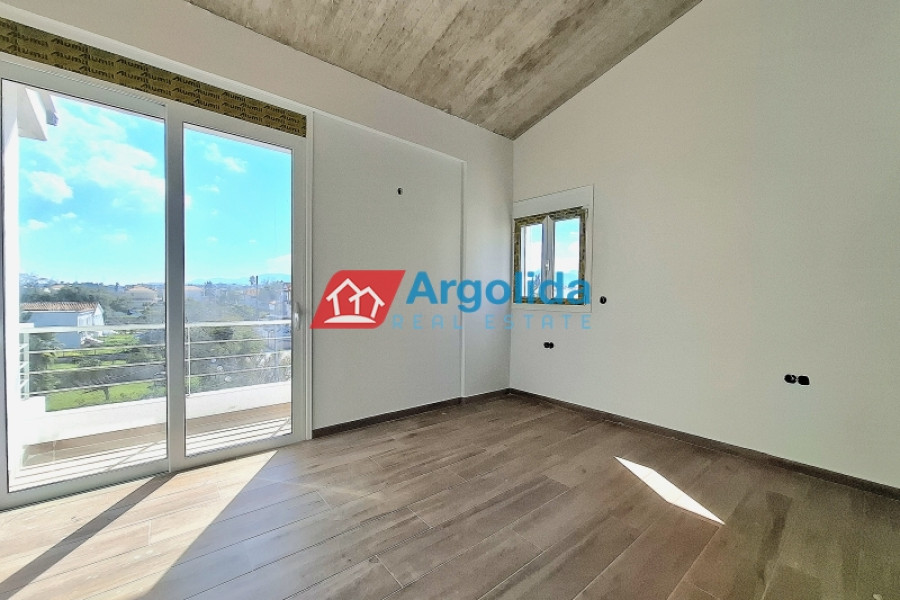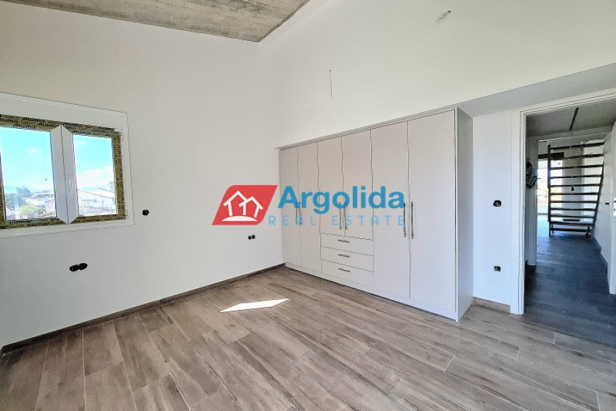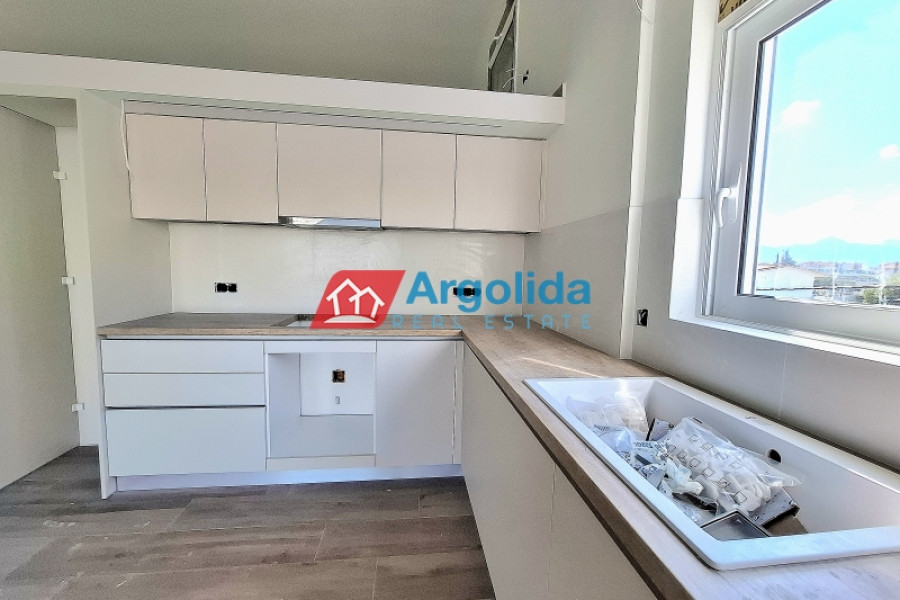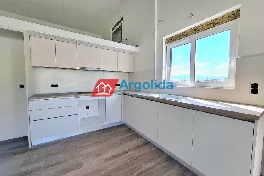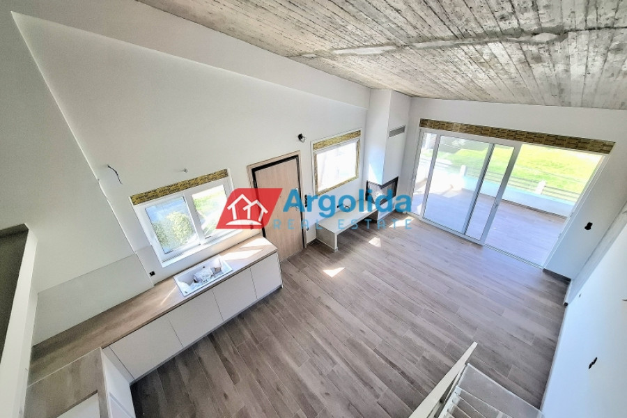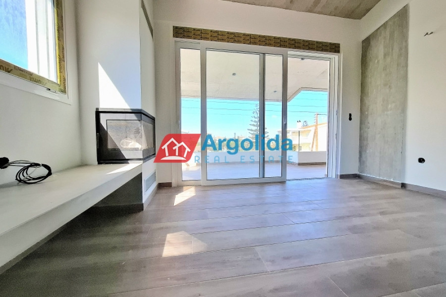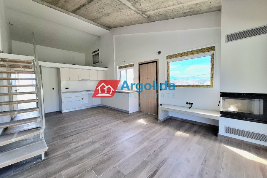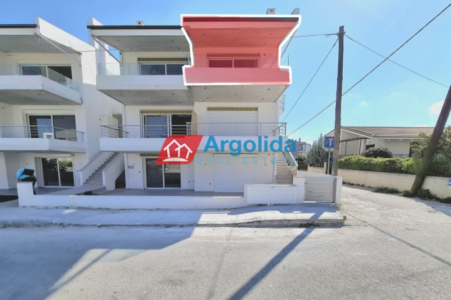FOR SALE: Newly built, high-ceiling penthouse apartment of 75 sq.m. in Assos, Corinthia, in the coastal area of Lechaio. Constructed in 2025 with modern materials and an energy class of B+, the property offers comfort and functionality. It features two bedrooms (the second one in the attic), a spacious open-plan living room and kitchen, and one bathroom, with cooling and heating provided via air conditioning. Modern construction details include sliding aluminum frames, tiled floors, a security door, built-in wardrobes, double energy-efficient glazing, insect screens, and a solar water heater. The residence also boasts balconies with a total area of 12 sq.m., offering openness and an unobstructed view. The apartment is just 400 meters from the sea and the organized beach, 800 meters from the central market of the area, 6 km from the city of Corinth, and 130 km from Athens International Airport. The neighborhood offers easy street parking, while the area combines tranquility with easy access to essential infrastructure. An excellent opportunity for a permanent or holiday residence in a developing seaside location.