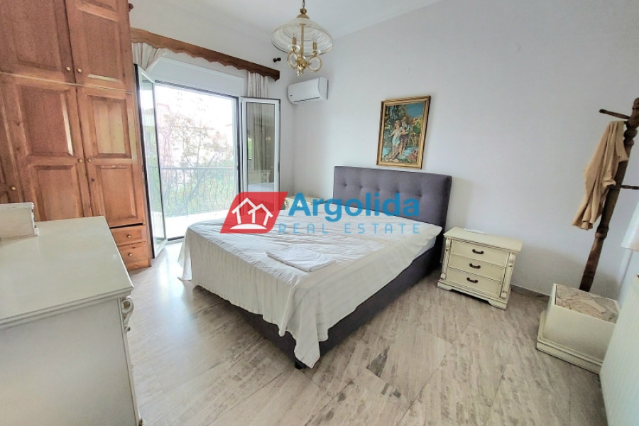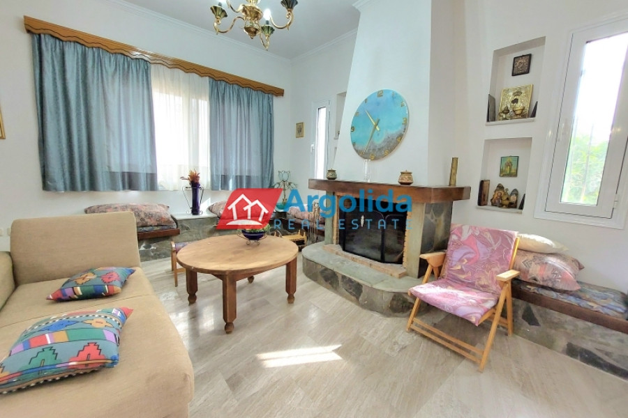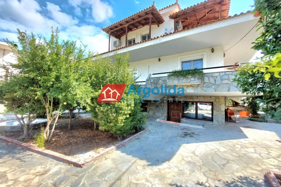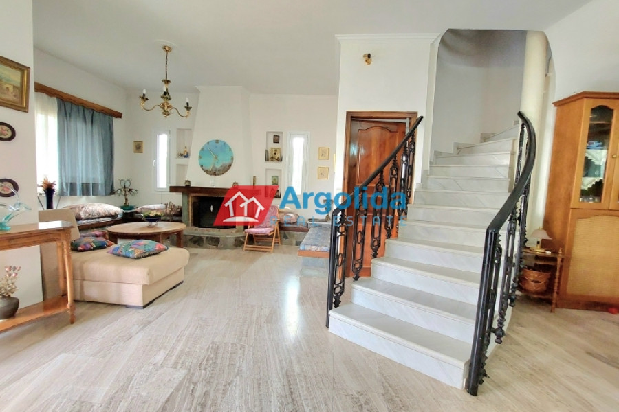 Property Code: 583158 - House FOR SALE in Nafplio Agia Kiriaki for € 650.000 . This 275 sq. m. furnished House is on the Mezzanine floor and features 5 Bedrooms, Livingroom, Kitchen, 2 bathrooms and a WC. The property also boasts Heating system: Individual - Petrol, marble floor, view of the Open horizon, Window frames: Aluminium, parking, a storage unit 80 sq.m. sqm, garden, fireplace, A/C, electrical appliances, awnings, insect screens, double-glazed windows, solar-powered water heater, boiler, entry stairs, attic, ceramic roof, playroom, open space, internal staircase, balconies: 60 sqm. The building was constructed in 1993 Plot area: 314 s.q. . Building Energy Rating: D Distance from sea 1500 meters, Distance from the city center: 500 meters, Distance from nearest airport: 165000 meters, In the outskirts of Nafplion, a family home with a total area of 275m² on a 314m² plot is for sale. The main house (175 m²) is spread over two levels and has, on the elevated ground floor, a large lounge plus a secondary sitting area and a separate dining area, a comfortable kitchen and and a WC. The level has a large wraparound veranda. Upstairs upper level there are four spacious bedrooms with verandas and the main bathroom. The house also has attic storage space.The 100m² semi-basement with its own independent entrance is an open space that can be converted for any use. A guest suite with its own bathroom has already been created on this level.The home has oil heating and a fireplace in the living room, and there are air conditioners in almost all areas. The property is walled and fenced with lawns, garden areas and mature trees.