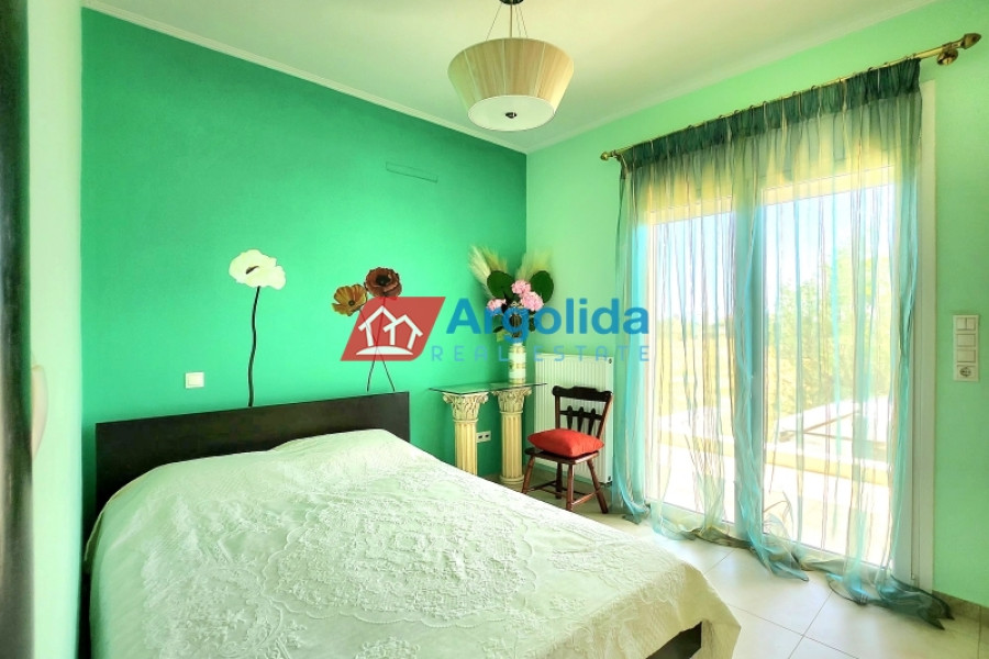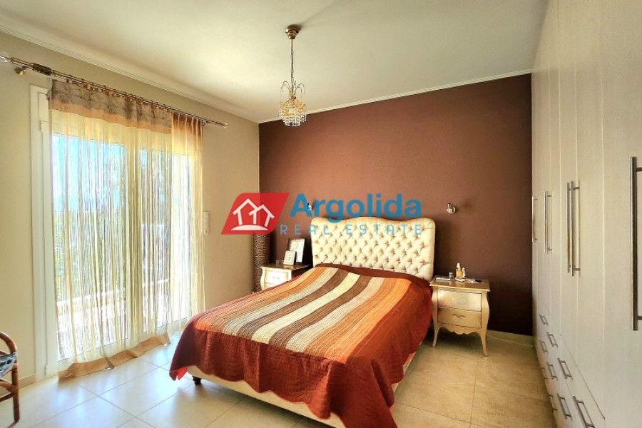 An excellent detached dual-residence on an 800m² corner plot with a remaining building factor is for sale. The main residence (145m²) is found on the elevated ground floor. It has an expansive living room with an energy fireplace along with the fully-equipped kitchen, three (3) bedrooms with large fitted wardrobes and two bathrooms. The semi-basement has a total area of 170m² and includes an independent and bright apartment with an open-plan lounge-dining-kitchen area with fireplace, two bedrooms, one bathroom. The level also features a large two-vehicle garage along with a large storage area.The home is sold furnished and equipped with appliances. The corner plot is walled and fenced with gardens as well as 20 mature olive trees. The remaining building factor of the plot allows for an additional level (first floor) on the existing building for a 60m² independent apartment and a second independent home of up to 200m².Surrounded by mainly newly built homes the location also gives direct and easy access to all the central points of the area and is only 1500 meters from the sea and 4km from the Suburban Railway StationI with a direct route to Athens International Airport.