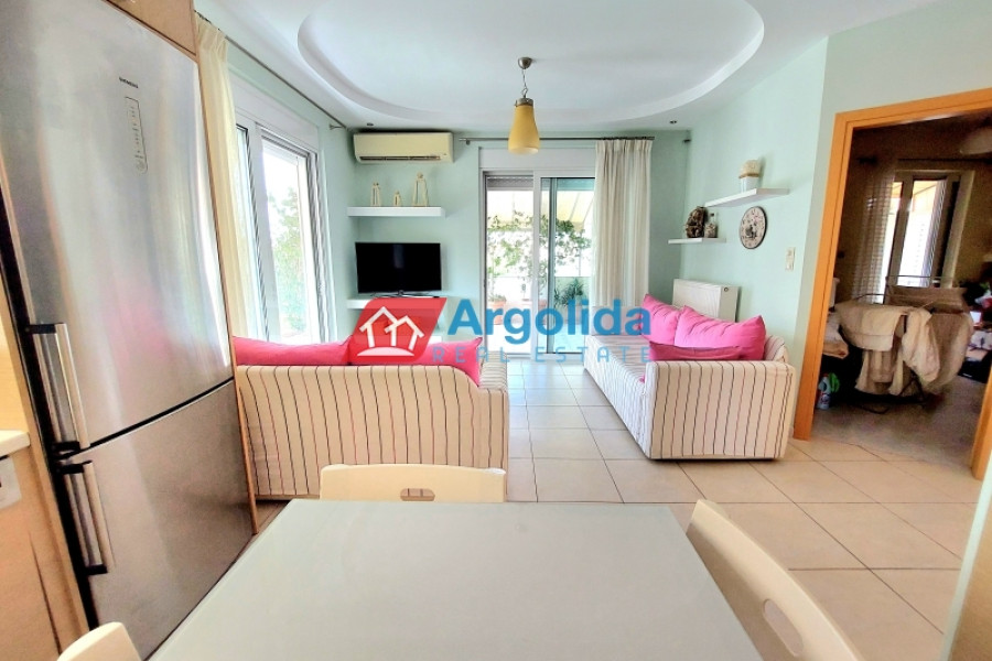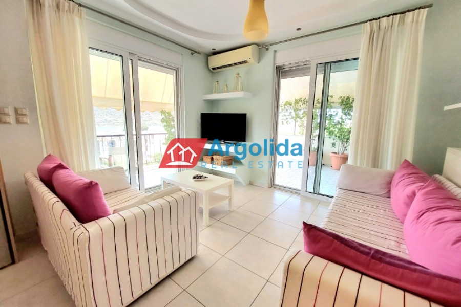 Property Code: 583138 - Apartment FOR SALE in Asini Vivari for € 235.000 . This 95 sq. m. Apartment is on the 1 st floor and features 3 Bedrooms, Livingroom, Kitchen, 2 bathrooms . The property also boasts Heating system: Individual - Petrol, tiled floor, view of the Sea, Window frames: Aluminum - Sliding, Security door, a storage unit 4 sq.m. sqm, garden, pre-installation for alarm system, electrical appliances, awnings, insect screens, double-glazed windows, solar-powered water heater, entry stairs, BBQ, open space, balconies: 75 sqm. The building was constructed in 1992 and renovated in 2008 Plot area: 500 s.q. . Building Energy Rating: D Distance from sea 200 meters, Distance from the city center: 8000 meters, Distance from nearest village: 300 meters, Distance from nearest airport: 165000 meters, In Vivari, a coastal settlement just 9 kilometers from Nafplion, a 95m² apartment, completely renovated in 2008, is for sale.The first floor apartment has a comfortable living-dining-kitchen area, three spacious bedrooms, one of which is a master with its own ensuite bathroom, and a family bathroom. The home has a wraparound balcony with a wide terrace including a barbeque and dining area overlooking the sea.The property comes with built-in kitchen appliances (oven and dishwasher), autonomous oil heating with its own burner and 4m² storeroom.It is just a 3-4 minute walk to the beach and wonderful seafront fish tavernas and only a ten-minute drive from cosmopolitan Nafplio town.