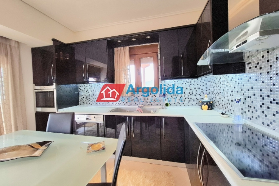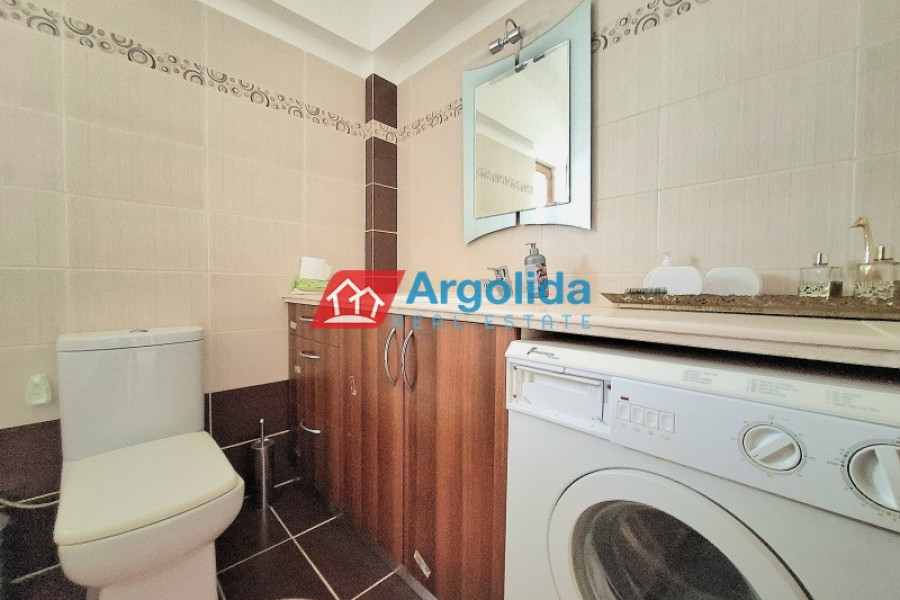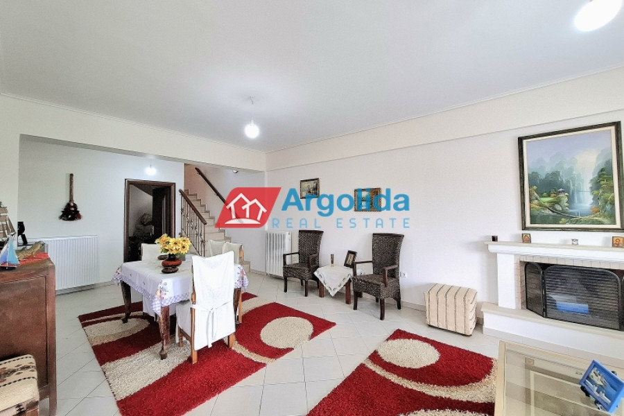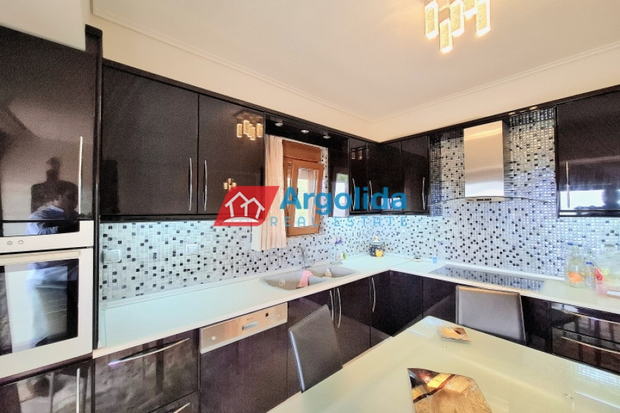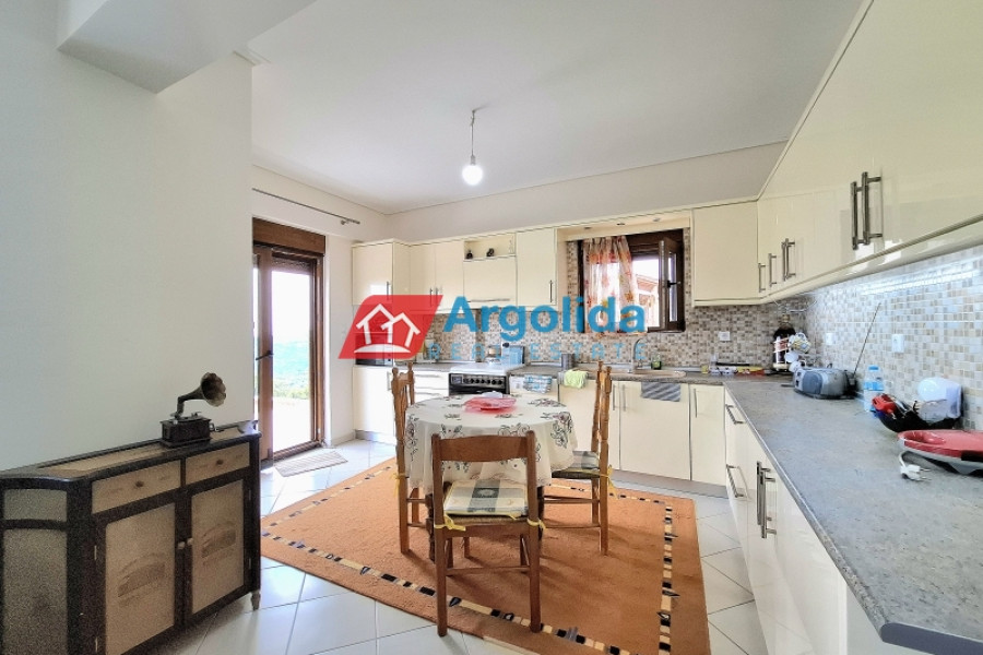 In the picturesque village of Megalos Valtos, a short distance from Kiato (12 km), a newly built (2022) home with a total area of 200m² on a 535m² plot is for sale. The property has, on the upper ground floor, a living-dining room with a fireplace, an open kitchen, a bathroom, one bedroom, and a wraparound balcony with a stunning view. On the lower ground floor (due to the incline of the plot) there is a semi-independent apartment with stairway access to the upper level. It has a living-dining room with a fireplace, an open kitchen, a bathroom, two (2) bedrooms, a 10m² storeroom and opens to a large terrace. Within the grounds there is open parking for two vehicles, a 10m² storeroom and enough space for the future construction of a swimming pool. The house is fully furnished and equipped with new electrical appliances and is located in a quiet spot within the settlement. It is only 15 minutes from the seaside Kiato and the suburban railway with a direct route to Athens airport.