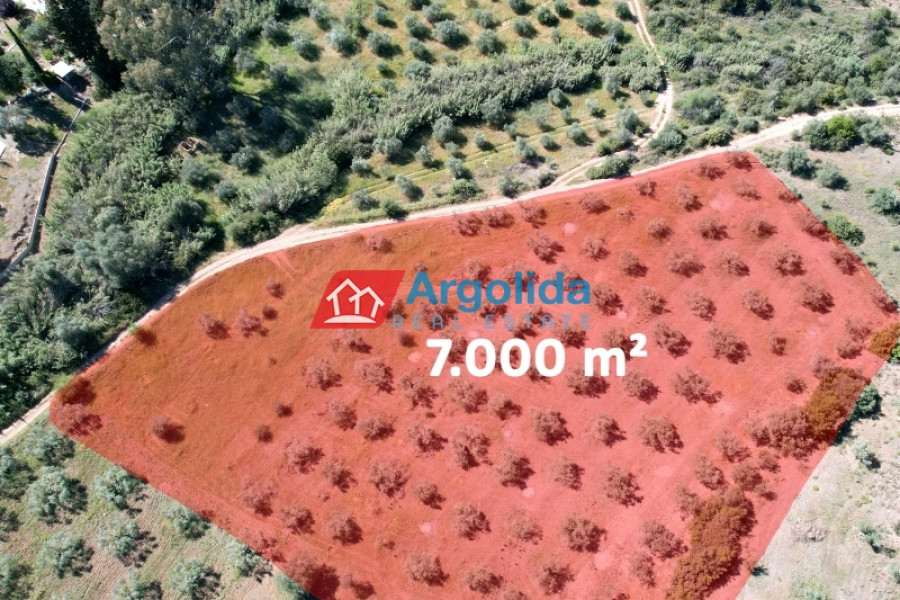 In Lefkakia Nafplio, in the area of Agios Thomas, for sale is an amphitheatrical plot of 7,000 sq.m. with unobstructed views and an open horizon. The land is buildable, with a maximum residential building allowance of 220 sq.m., and nearby there are holiday homes, while connections to mains water and electricity are easily accessible. It is an ideal choice for the construction of a permanent or holiday home, offering peace, natural surroundings, and beautiful views. Its location is privileged, only 9 km from Nafplio and 10 km from Tolo and its beaches.
