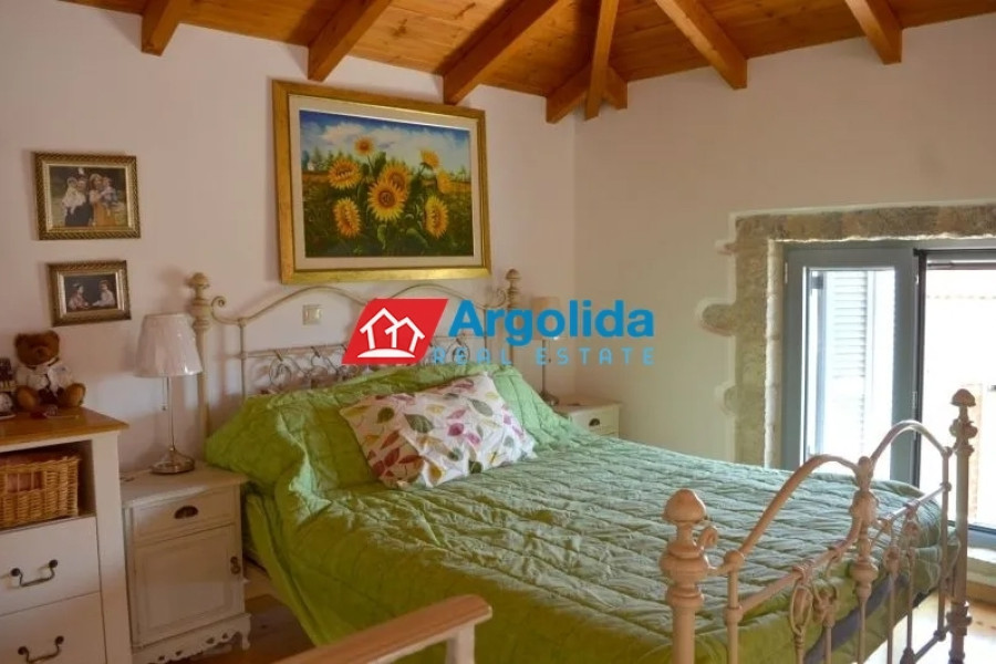 Property Code: 13083 - House FOR SALE in Levidi Center for € 590.000 . This 300.00 sq. m. House is on the Ground floor and features 4 Bedrooms, 2 Livingrooms, 2 Kitchens, 3 bathrooms . The property also boasts Heating system: Autonomous heating - Natural gas, tiled and wood floors, view of the Mountain, Window frames: Wooden, Security door, a storage unit sqm, garden, fireplace, A/C, alarm system, insect screens, double-glazed windows, ceramic roof, open space, internal staircase. The building was constructed in 2009 Plot area: 700 s.q. . Building Energy Rating: D Distance from sea 88000 meters, Located in a picturesque and tranquil village, with exceptional cultural heritage architecture, an enclosed traditional homestead complex with two main buildings is for sale, each housing two independent apartments, offering a range of potential uses and development opportunities. Sitting on a hillside site with extraordinary views out over the mountain plains, the original stone buildings have been lovingly renovated. The first building includes a spacious 54 sq.m. open-plan apartment featuring a beautiful fireplace in the living room, a fully equipped kitchen, and a dining area. The attic, measuring 20 sq.m., houses a large bedroom with breathtaking views of the surrounding area. The main bathroom is located on the ground floor, and there is also a smaller bathroom on the upper floor serving the attic bedroom. Next to this is a studio apartment (26 sq.m.) with its own independent entrance. The exterior is fully completed, while the interior remains unfinished and is currently being used as storage. This provides a unique opportunity for future conversion according to the new owner’s needs. The adjacent building, covering 100 sq.m., was originally a stable but has been converted into a two-room guesthouse. The arched architecture of the original space has been preserved, creating a unique interior design that opens onto a stunning terrace with panoramic views of the surrounding landscape. On the upper floor of this building, the main apartment of 111 sq.m.(which requires completion) includes two bedrooms, an expansive open-plan living room-dining area, offering fantastic views from the windows and balconies. This apartment also features a guest bathroom, a family bathroom, and an attic space that can be transformed into two additional bedrooms. Between the buildings, the courtyards offer beautiful and quiet outdoor spaces, ideal for relaxation or entertaining. The location of the property is exceptional, just 20 minutes from the Menalon Ski Resort and the city of Tripoli. In addition, it is only a two-hour drive from Athens and the international airport, making it ideal for luxurious year-round living. This property is an excellent opportunity to create a boutique hotel or luxury apartments for rent, providing a profitable business venture in the heart of an area with natural beauty and rich cultural heritage. Contact us for more information or to schedule a viewing.